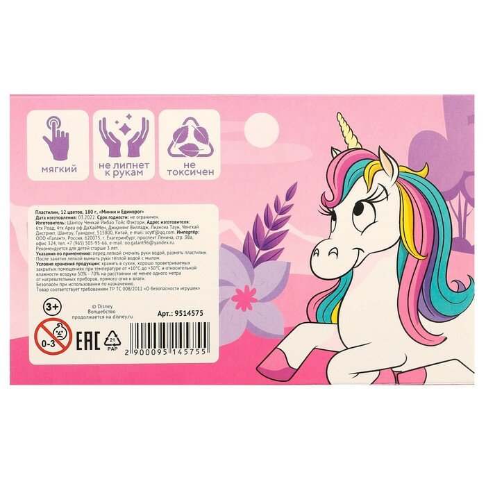 Пластилин 12цв 180г Минни и Единорог интересное:
