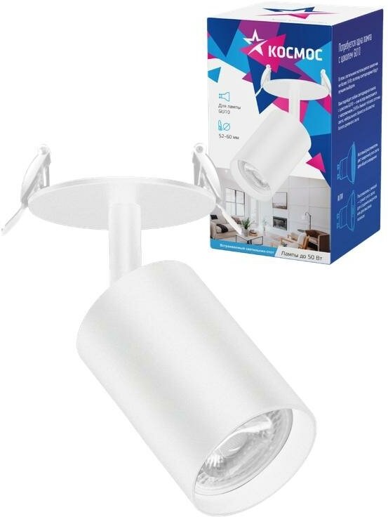 Купить Светильник светодиодный FixtGU10_001White под лампу GU10 накладной поворотн. черн. | код.KFixtGU10_001White | космос (15шт.в упак.)