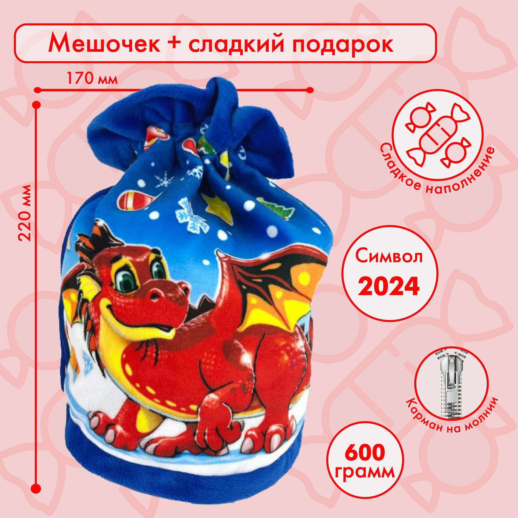 Сладкий новогодний подарок мягкая игрушка дракон Мешок Ночной дракон 600 гр. интересное: