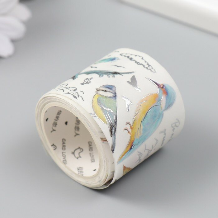 Клейкая лента бумага "Птички" ширина 4 см намотка 3 м 4х4 см интересное: