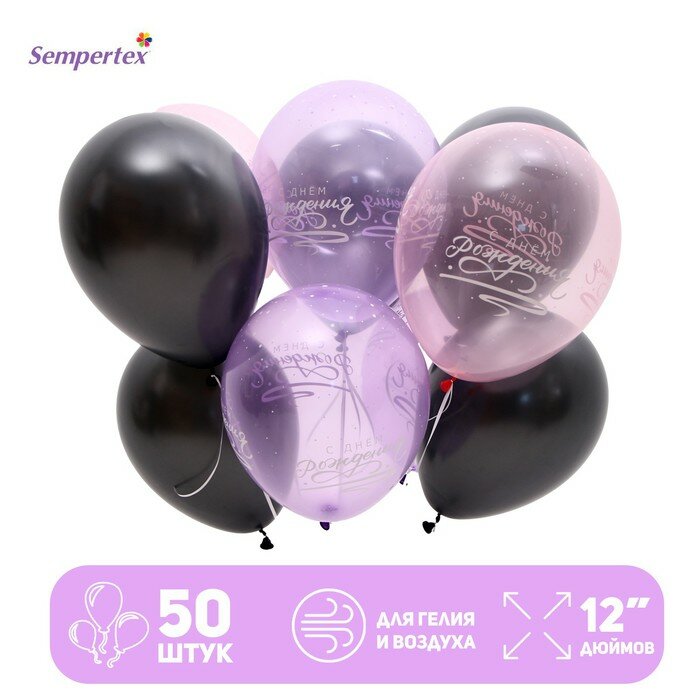 Шар латексный 12" "С Днем рождения", набор 50 шт., "Sempertex", цвет чёрный интересное:
