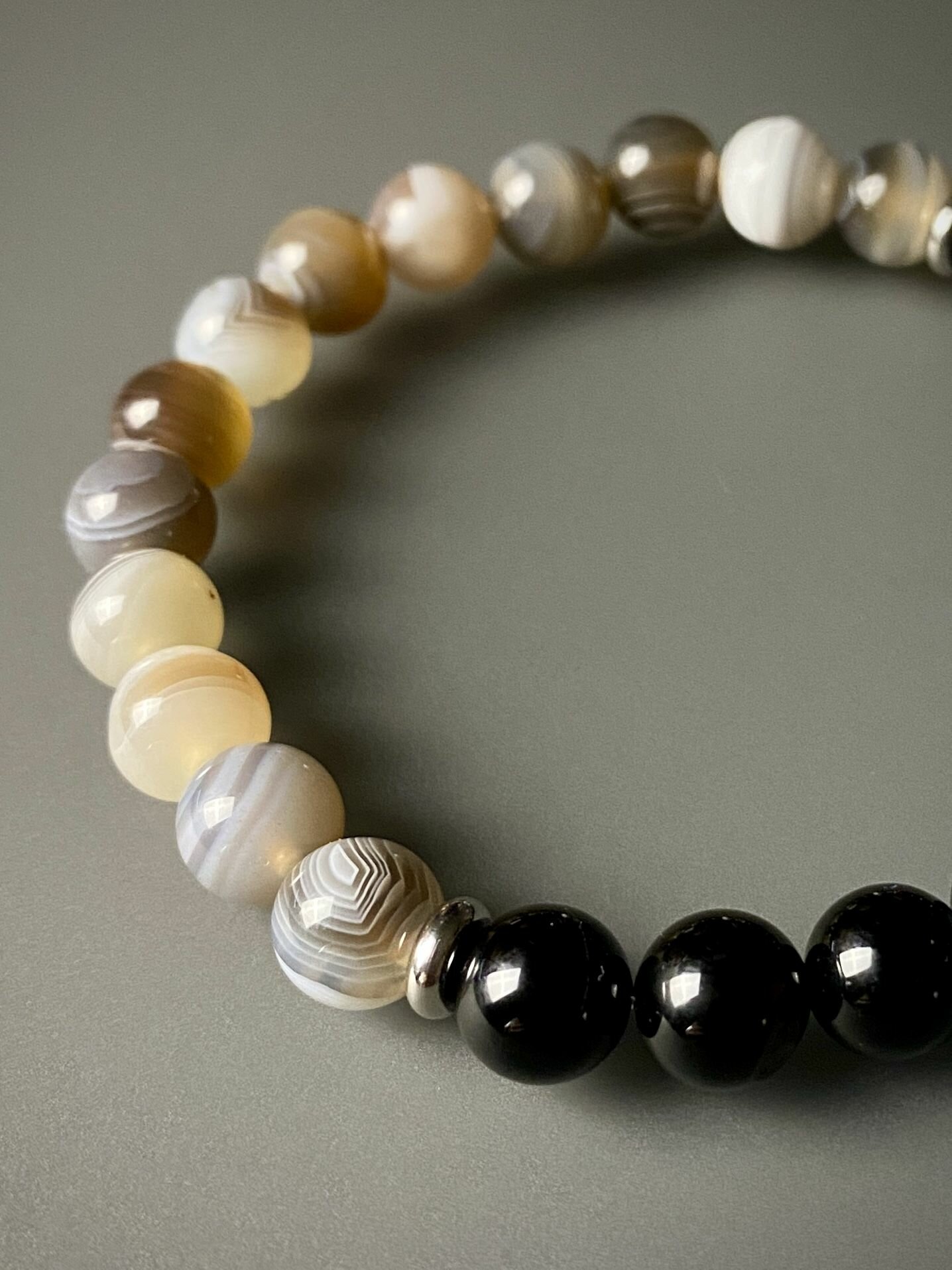 Браслет из натуральных камней агат ботсвана и черный агат на эластичной леске идея подарка-14-16