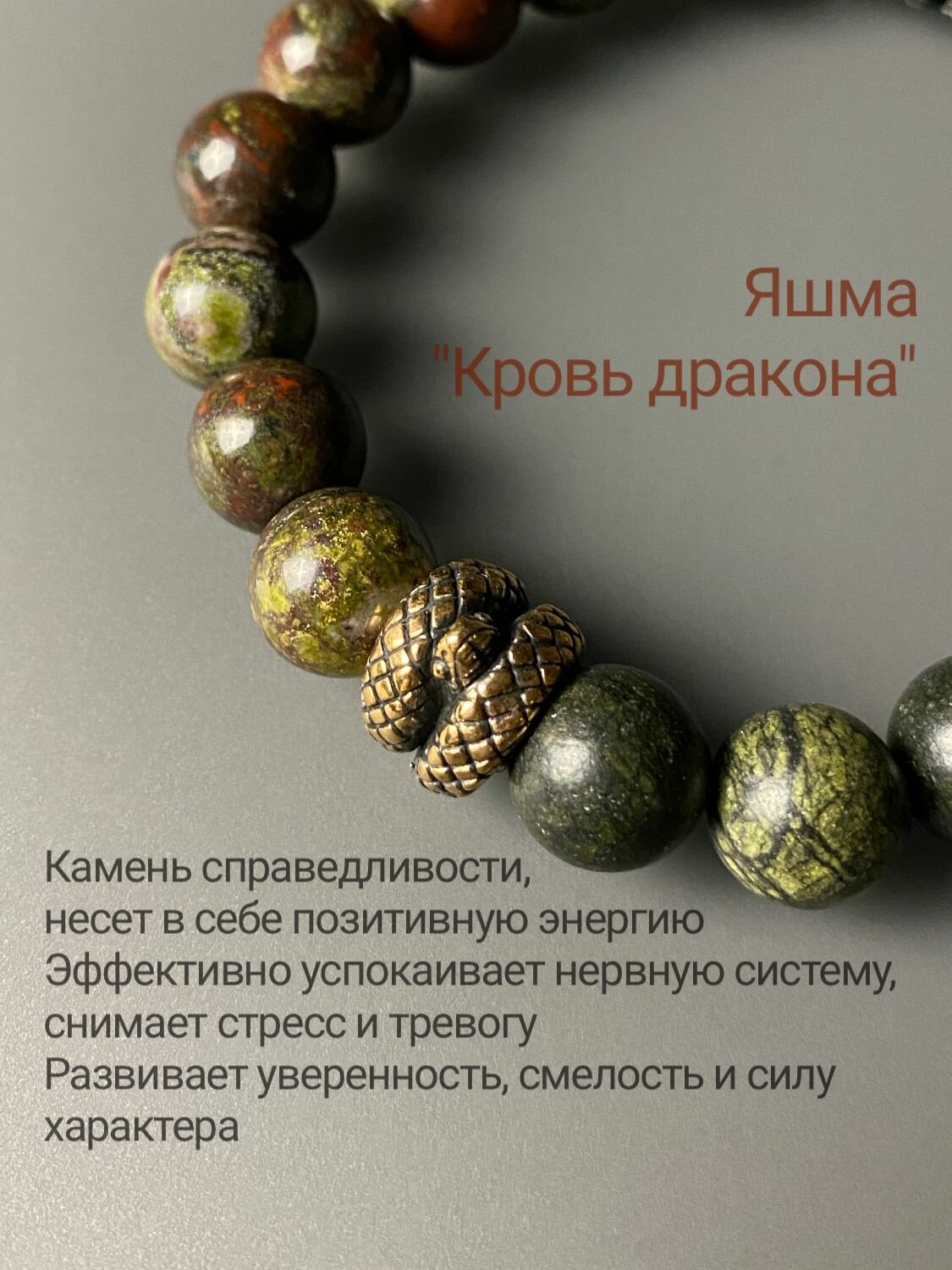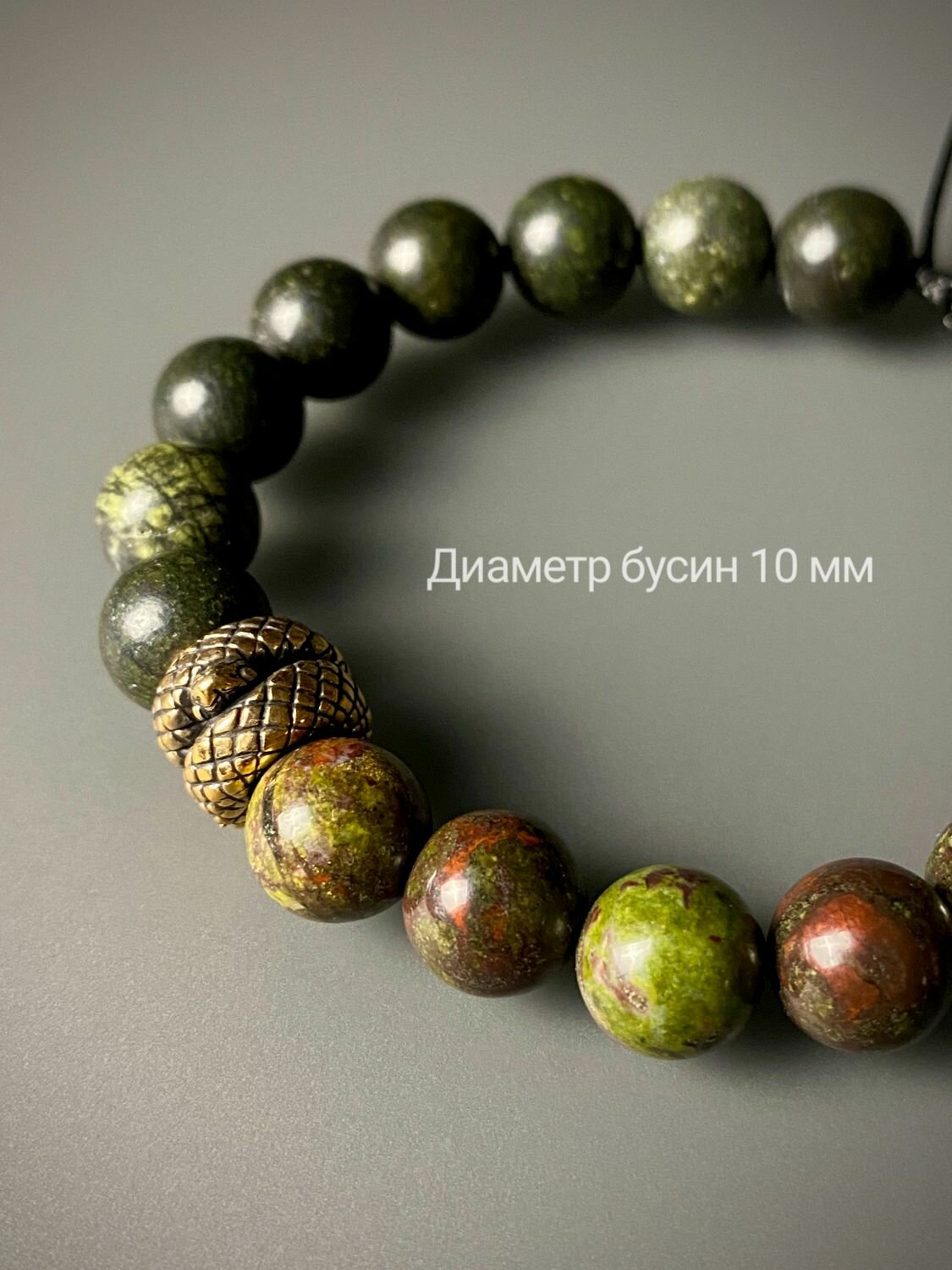 СохранитьБраслет из натуральных камней яшма, змеевик, бронзовая бусина змея плетеный шамбала-14-16 интересное: