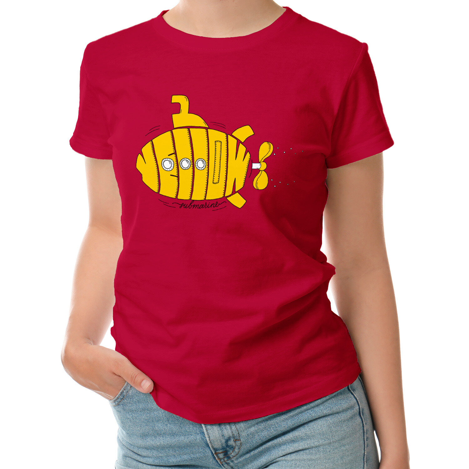 Женская футболка «Yellow submarine» (M, красный)