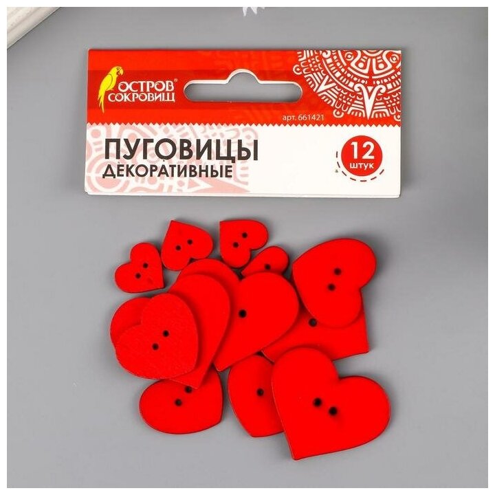 Пуговицы декоративные "Сердце", дерево (набор 12 шт) ассорти, красные интересное: