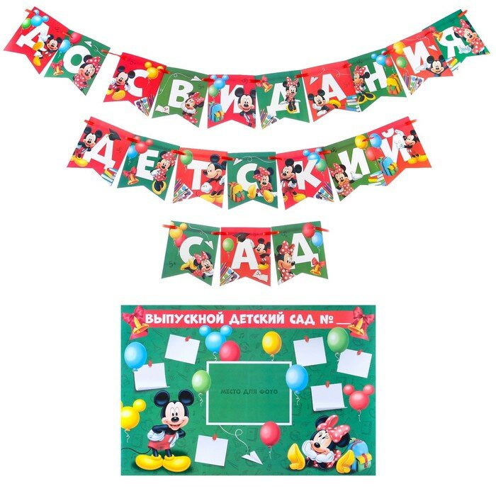 Купить Гирлянда на ленте с плакатом "До свидания детский сад", Микки Маус и друзья, 246 см