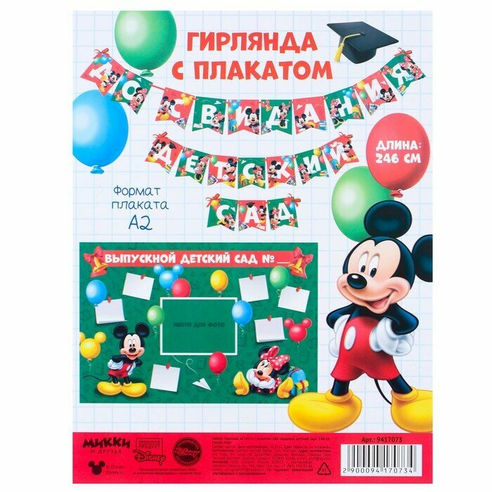 Гирлянда на ленте с плакатом "До свидания детский сад", Микки Маус и друзья, 246 см интересное: