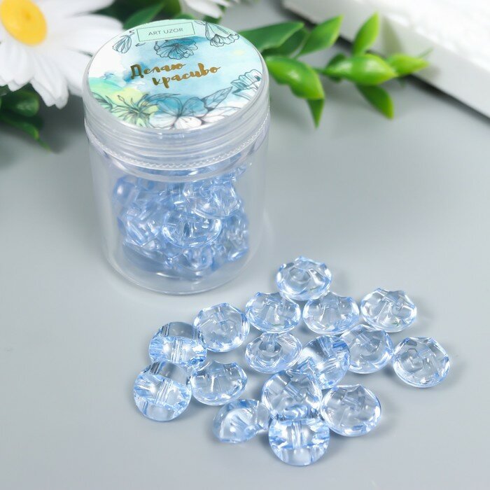 Пуговицы пластик на полуножке "Кристаллик голубой" 1,3х1,3 см набор 35 шт 4,8х3,7х3,7 см интересное: