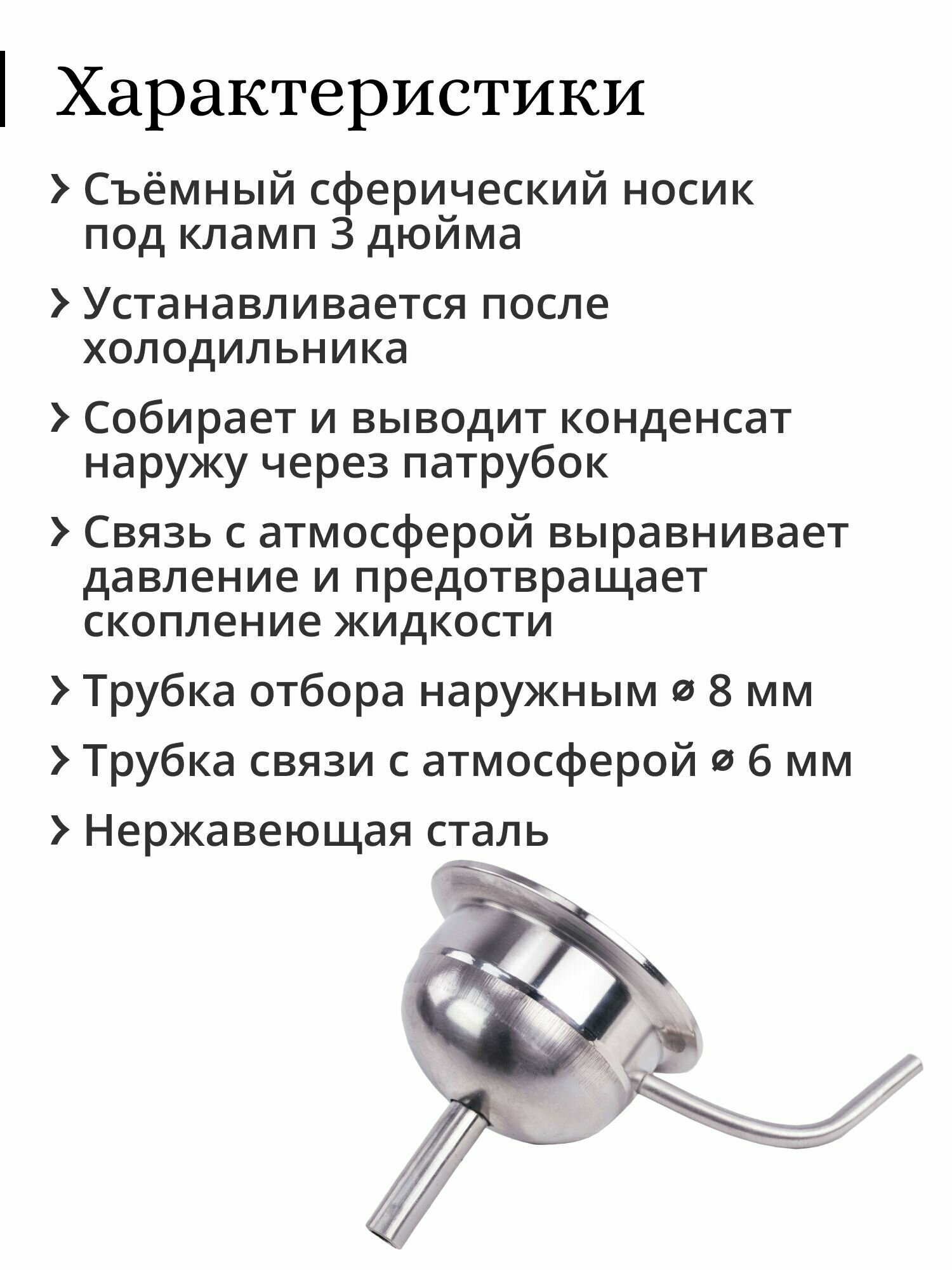 Носик съёмный, сферический Алкозверь, под кламп 3 дюйма, трубка отбора 8 мм, со связью с атмосферой интересное: