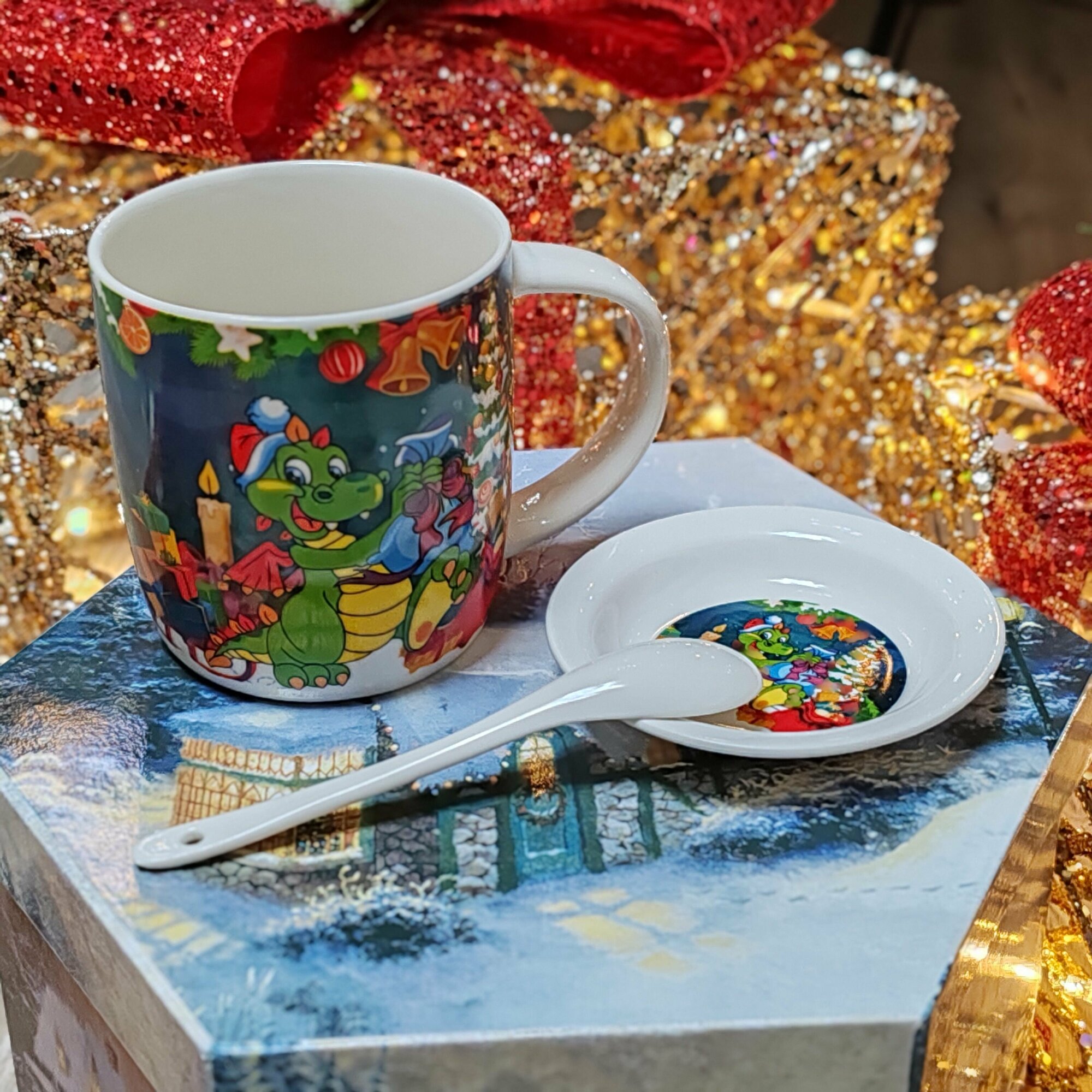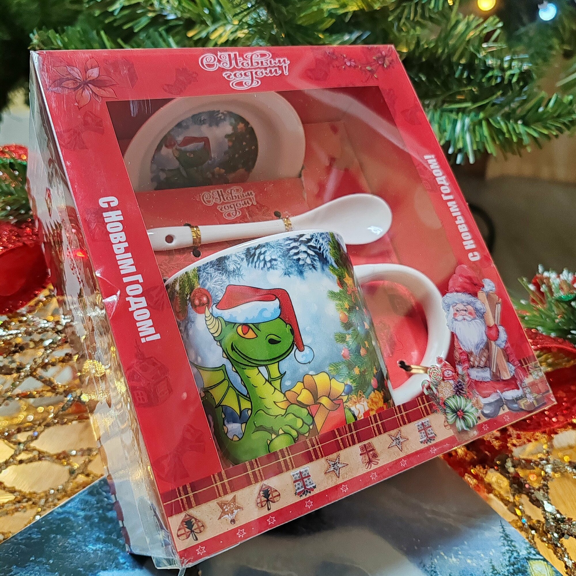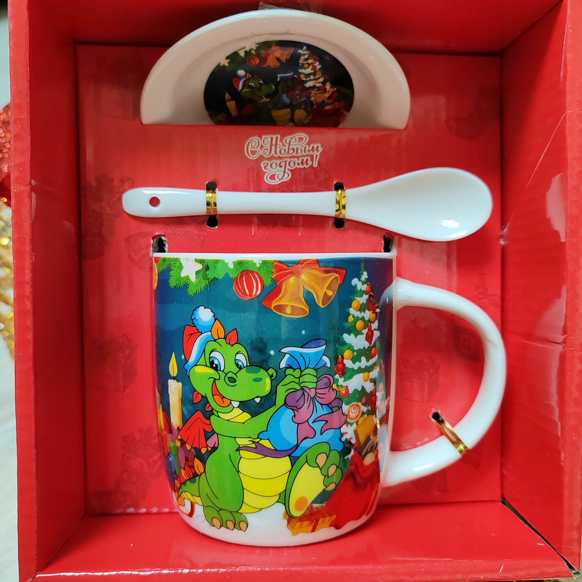 Набор кружка ложка блюдце, с новым годом, дракон. В подарочной упаковке. интересное: