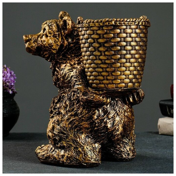 Подставка для зонтов "Медведь с корзиной" бронза 30х23х30см интересное: