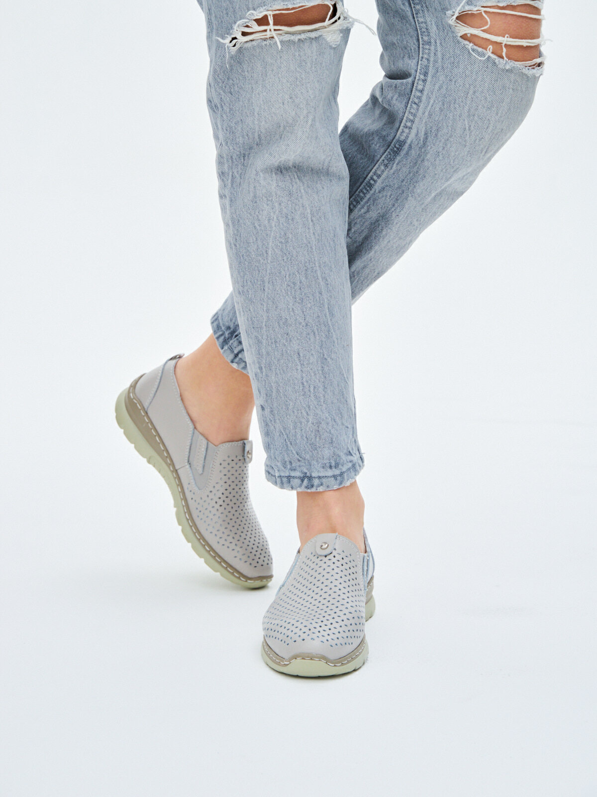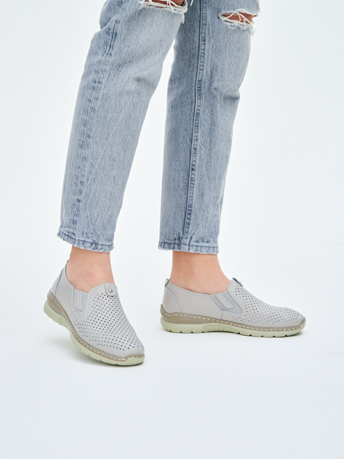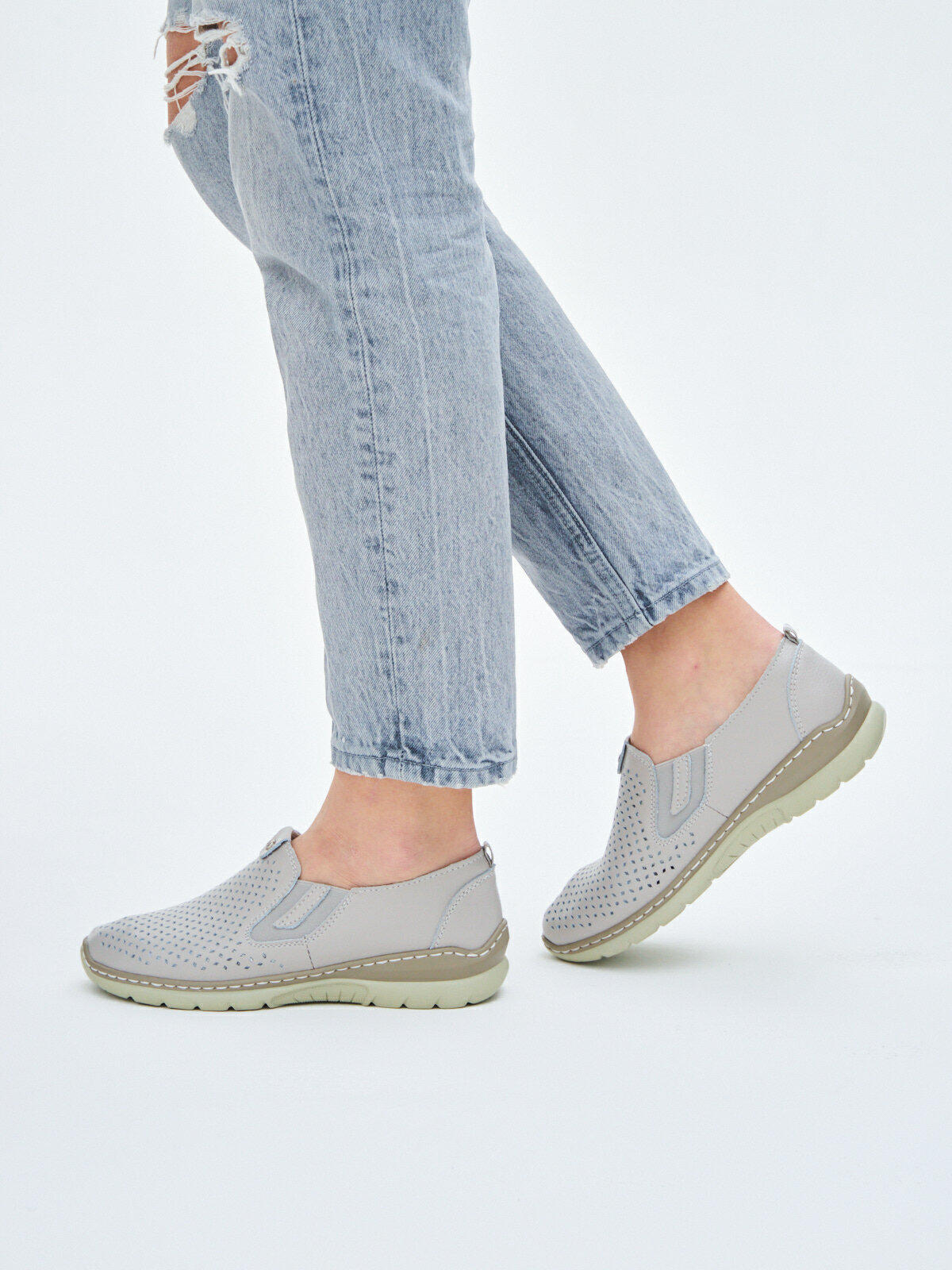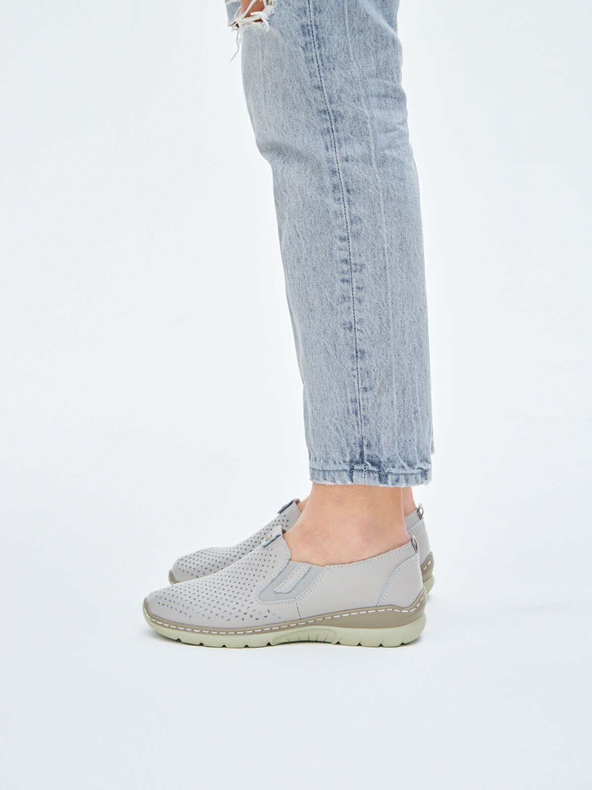Купить Слипоны натуральная кожа полуботинки широкие прошитые летние женские без шнурков в спортивном стиле ШирJY759-6-2-gray
