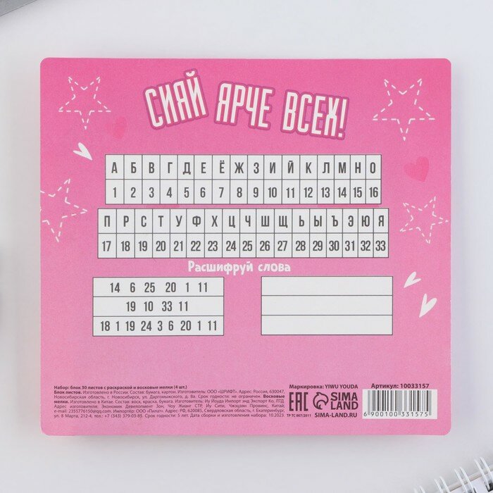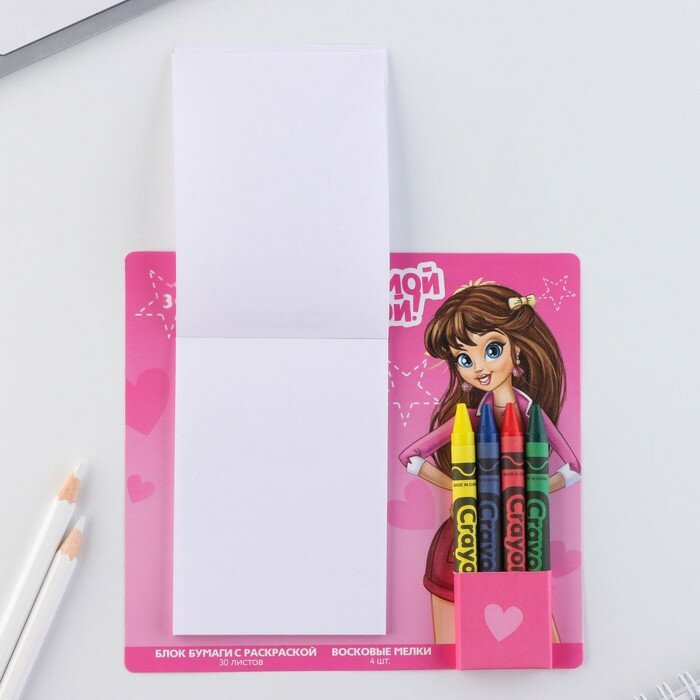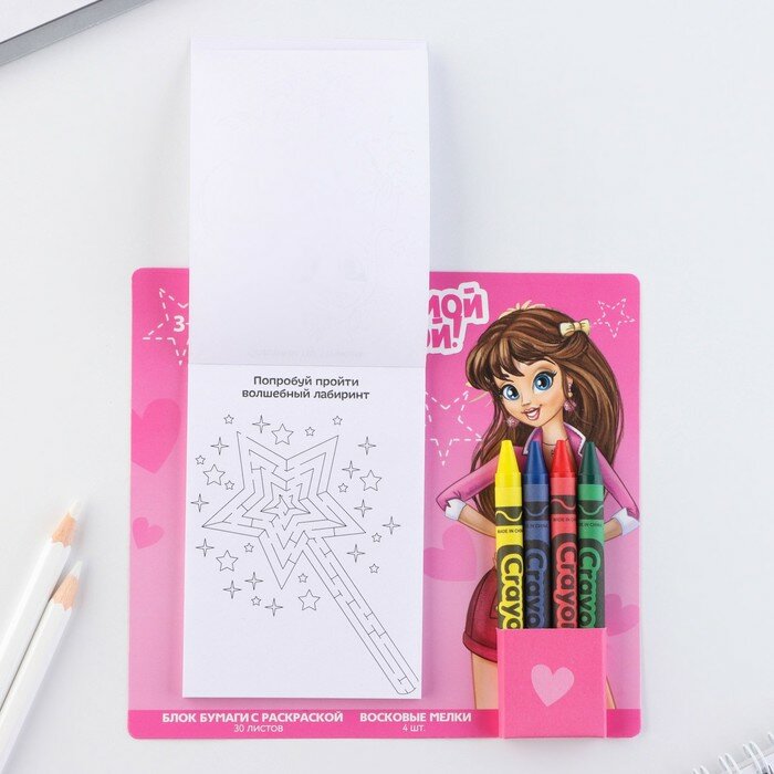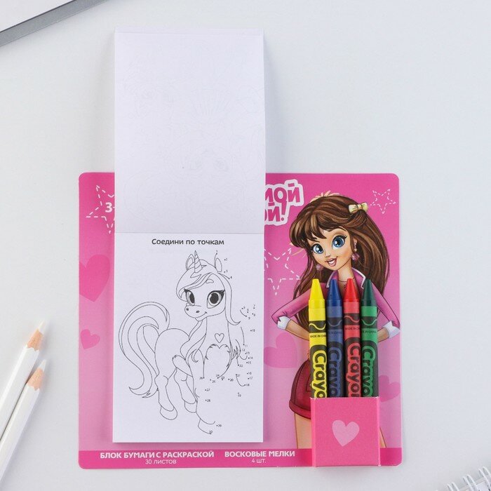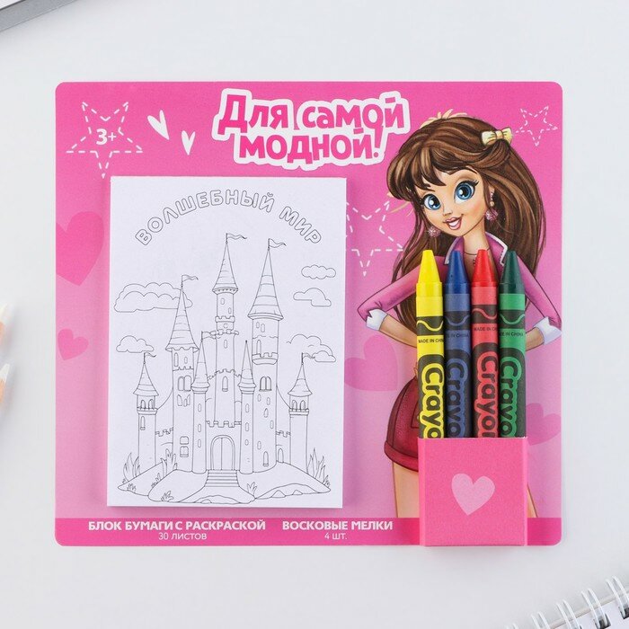 Набор: блок листов с раскраской и восковые мелки «Для самой модной» интересное: