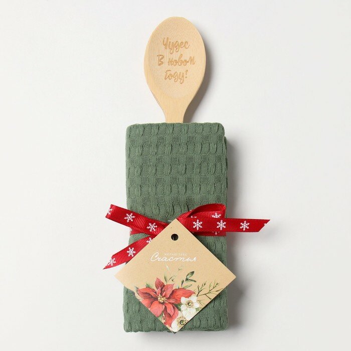 Купить Набор подарочный Доляна "Чудес в новом году": хаки полотенце 35х60см, хл 100%, ваф 220г/м2, цвет зелёный, материал хлопок