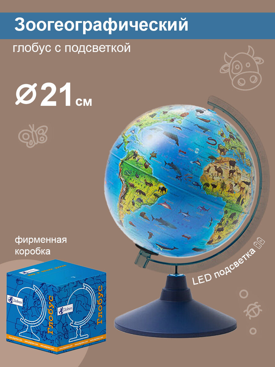 Глобен Глoбус зоогеографический (детский), диаметр 210 мм, с подсветкой от батареек
