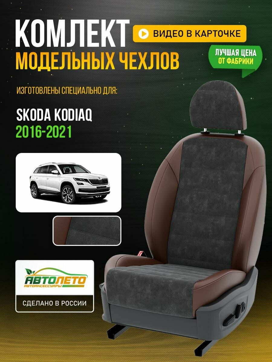 Чехлы для Skoda Kodiaq 1 2016-2021 Темно-Серый Шоколадный Алькантара Авто Лето LA321C30 интересное: