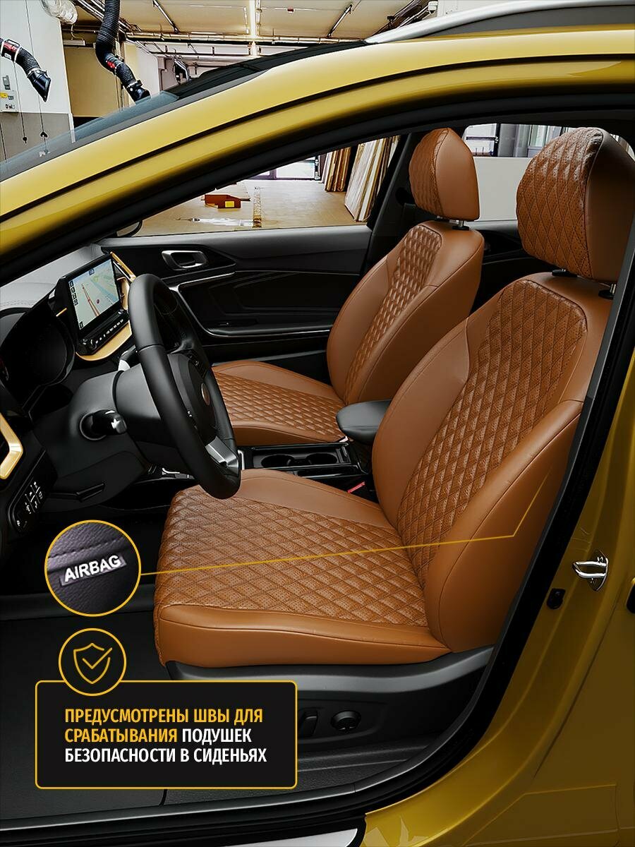 Купить Чехлы для Volkswagen T-5 T5 рестайлинг 2003-2015 Паприка Паприка Экокожа с ромбом и перфорацией Авто Лето LA136C88