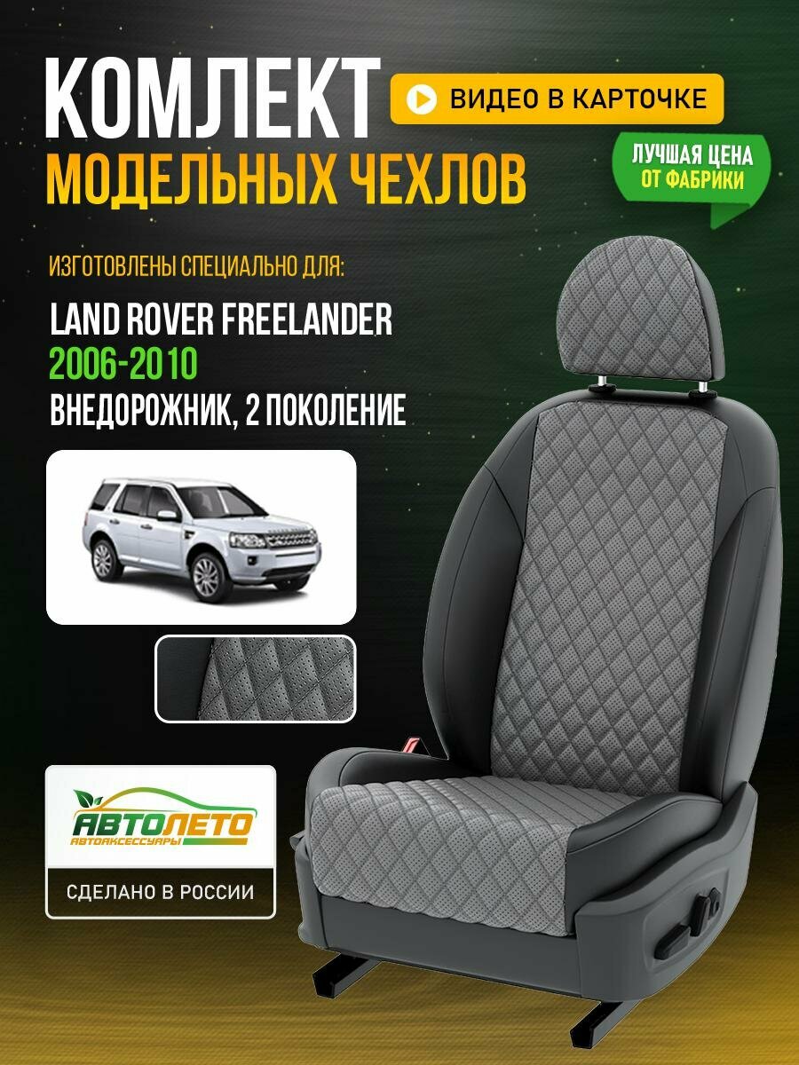 Чехлы для Land Rover FreeLander 2 2006-2014 Серый Черный Экокожа с ромбом и перфорацией Авто Лето LA599C105 интересное: