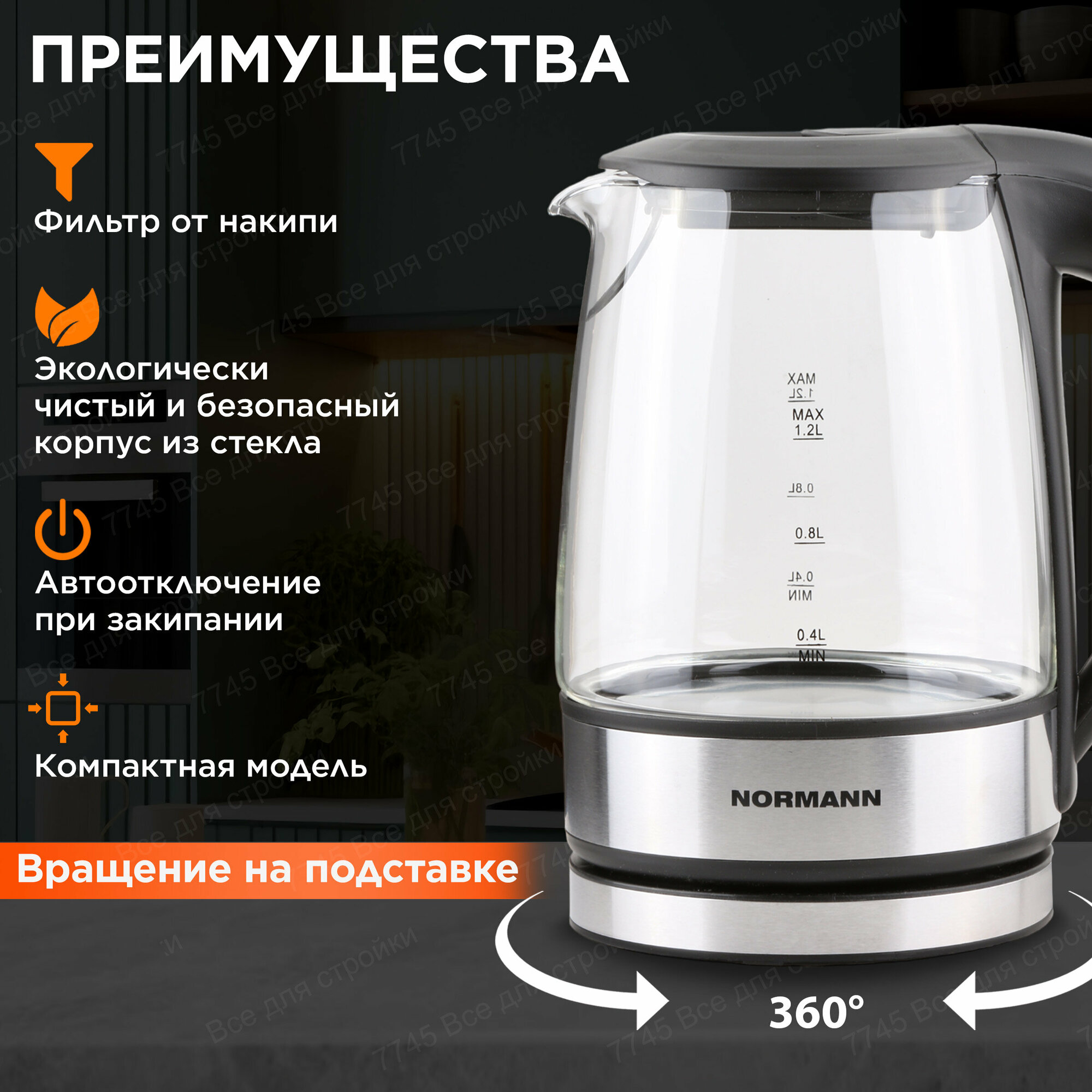 Чайник электрический стеклянный 1,2 л NORMANN AKL-235 интересное: