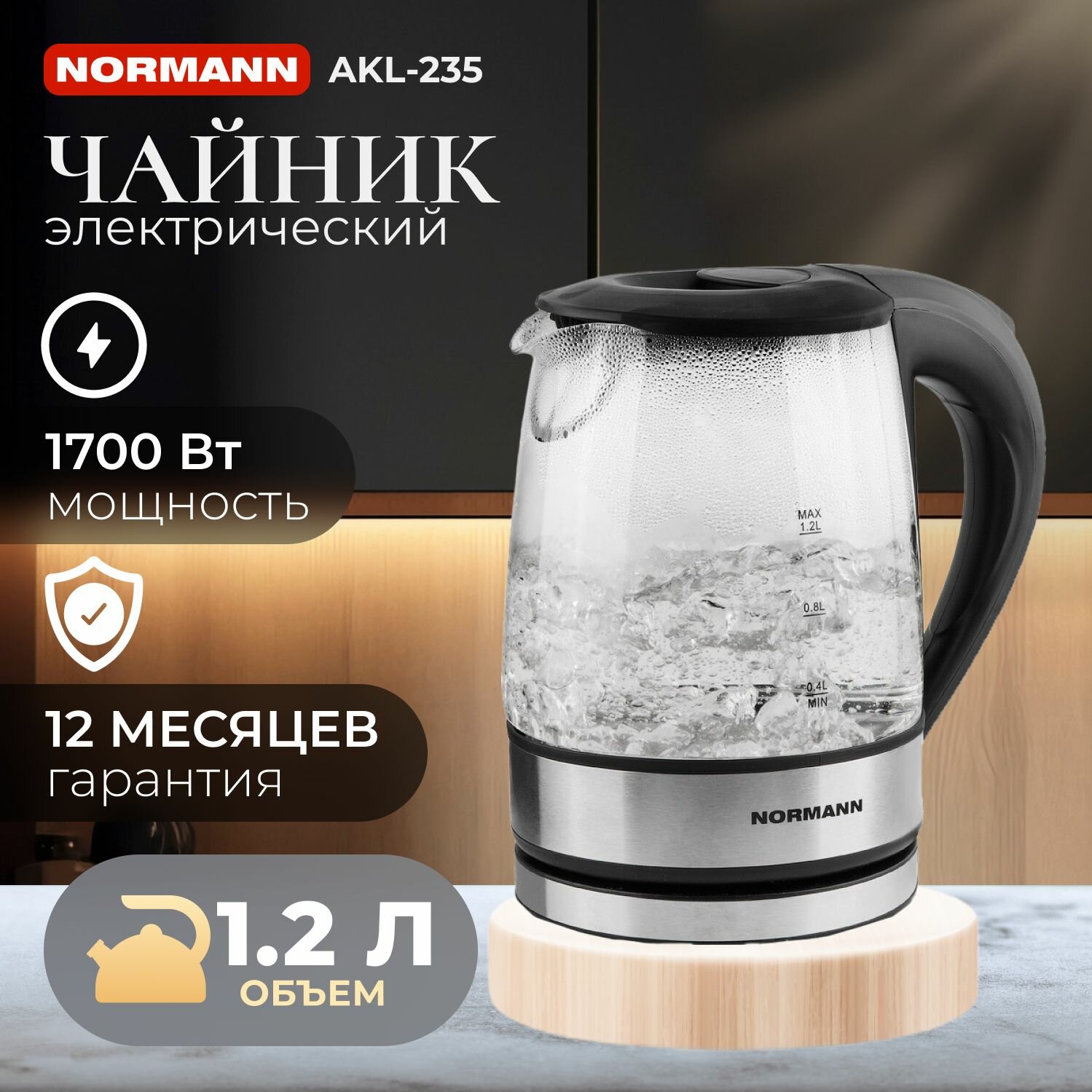 Чайник электрический AKL-235 NORMANN (1700 Вт; 1,2 л; стекло)