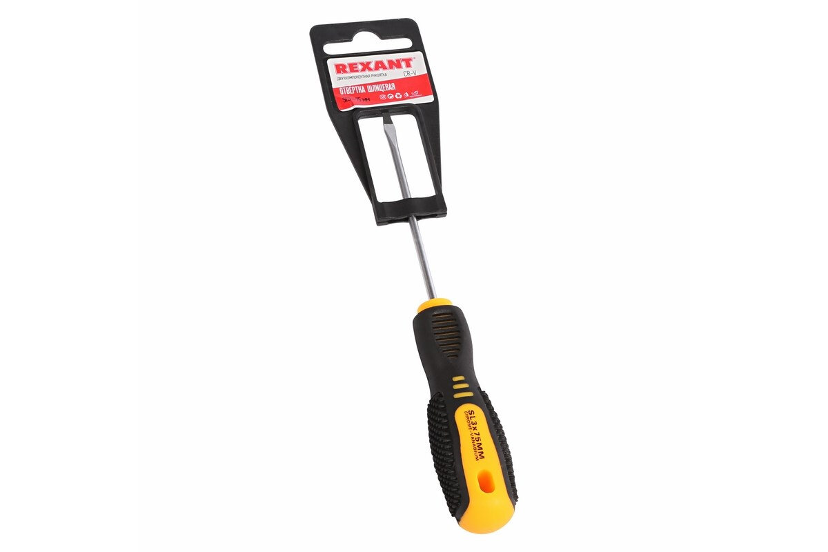 Отвертка Rexant шлицевая SL 3x75мм хром-ванадиевое жало магнитный наконечник двухкомпонентная ручка (комплект из 12 шт) интересное: