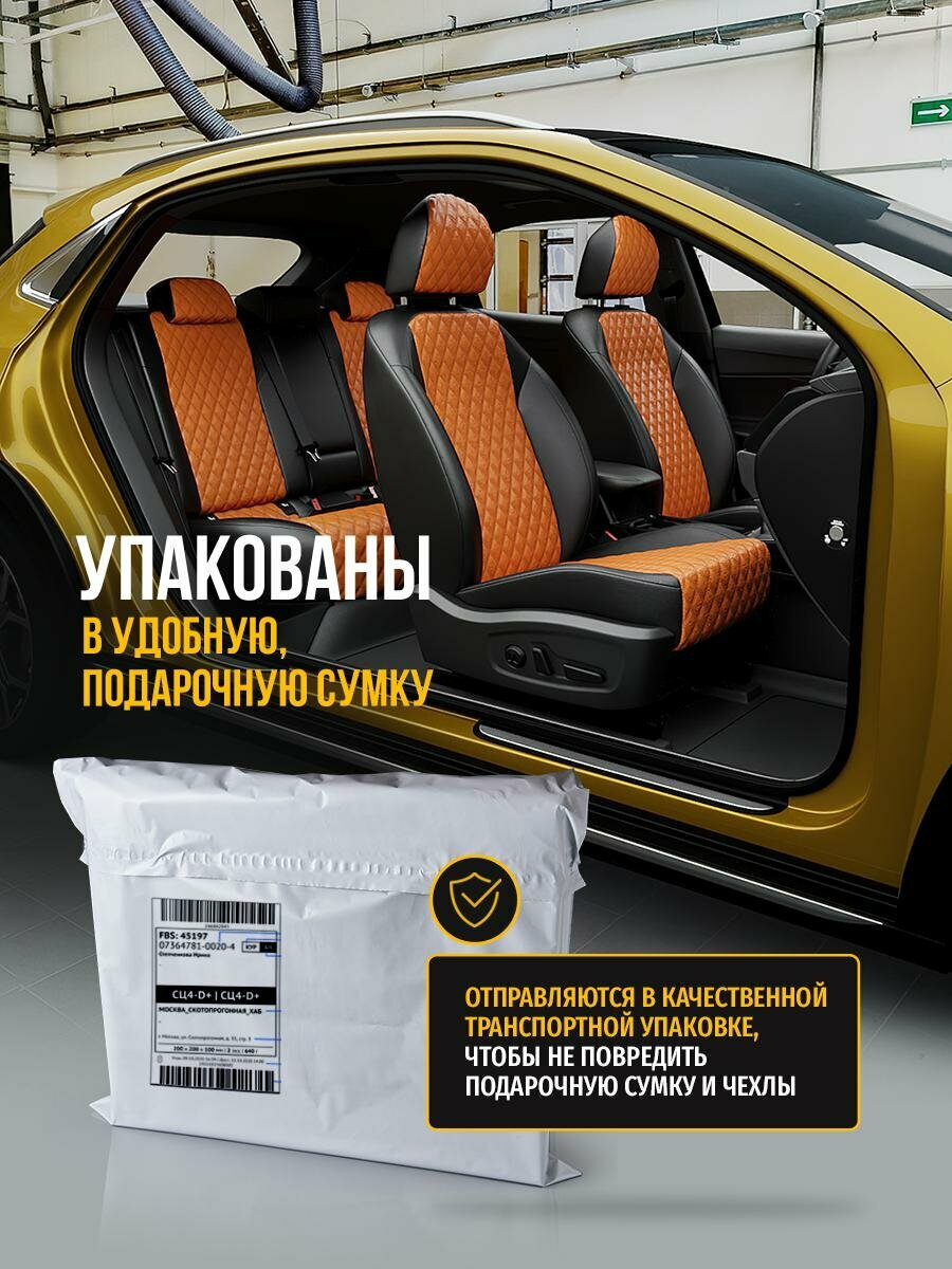 Чехлы для Hyundai Getz 1 2002-2011 Оранжевый Черный Экокожа с ромбом Авто Лето LA701C103 интересное: