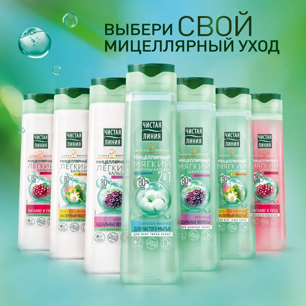 Чистая Линия Бальзам-ополаскиватель Шелковистый блеск Клевер, 230 мл 1 шт