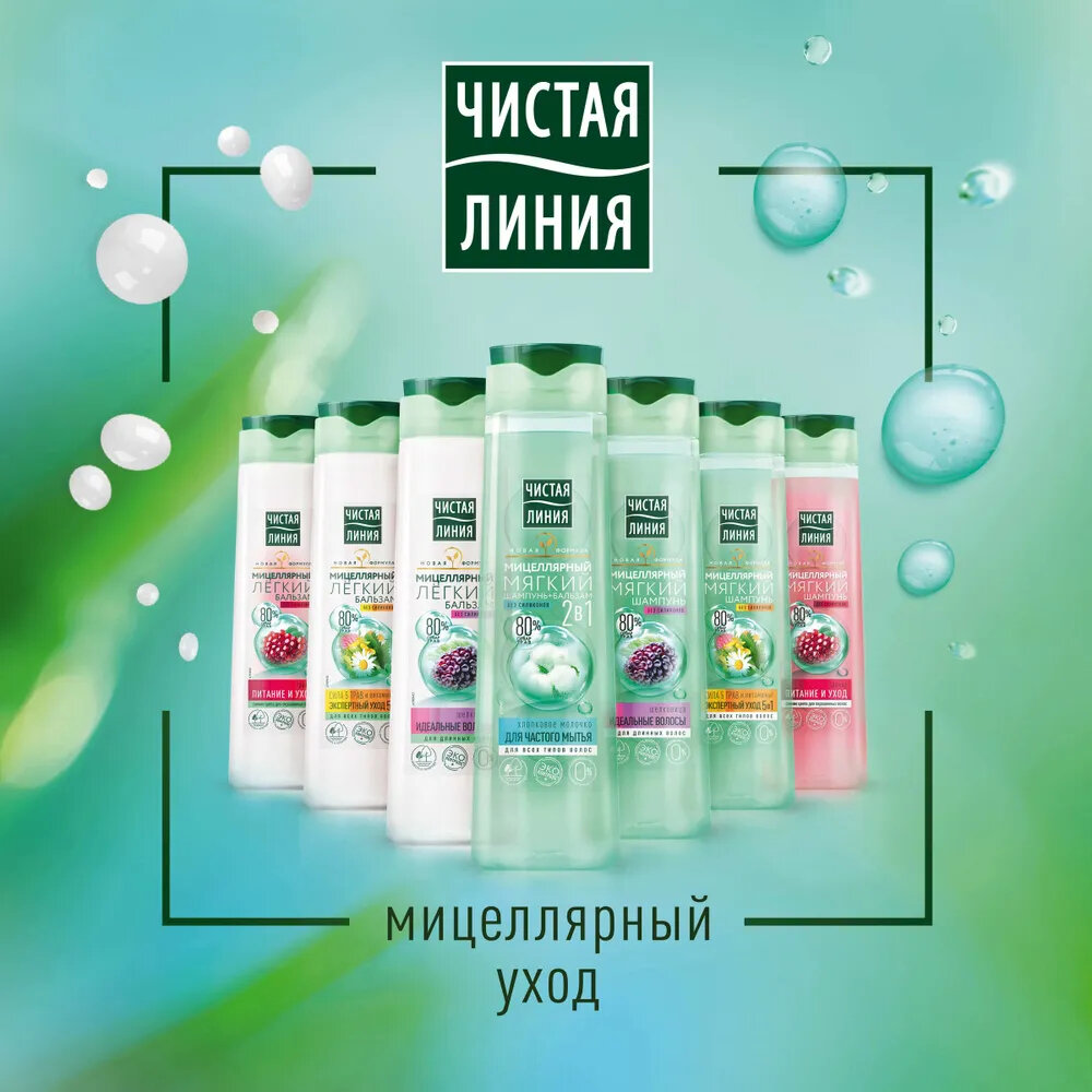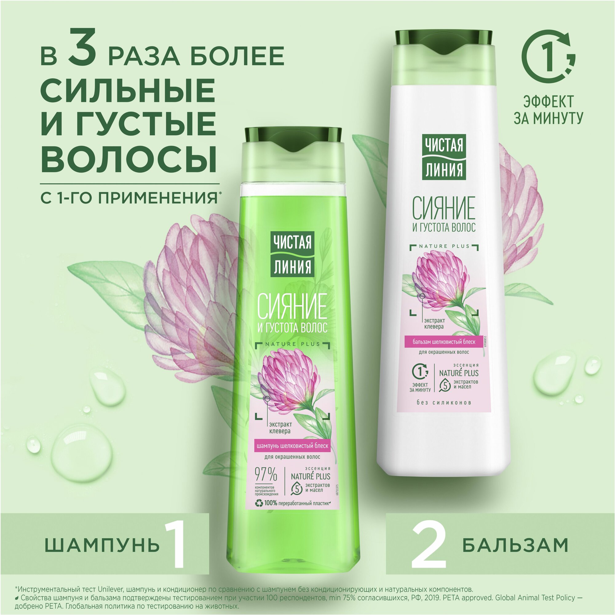 Чистая Линия бальзам-ополаскиватель Сияние и густота волос, Шелковистый блеск с экстрактом клевера 380 мл