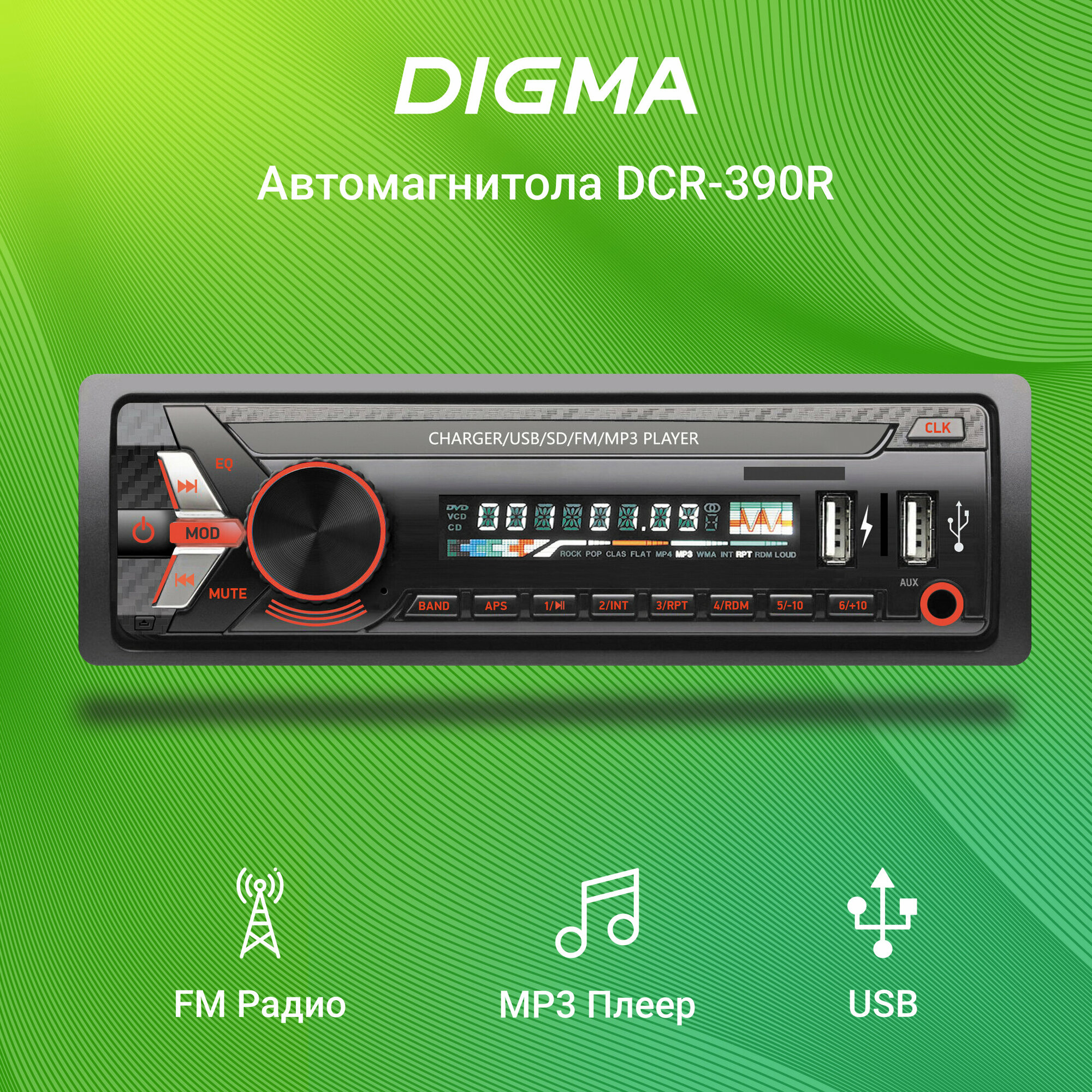 Автомагнитола USB/SD DIGMA DCR-390R