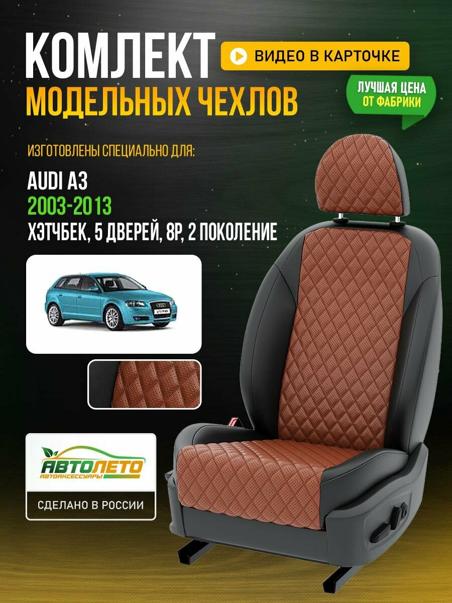 Купить Чехлы для Audi А3 2 8P 1996-2020 5 дверей Фокс Черный Экокожа с ромбом Авто Лето LA922C96