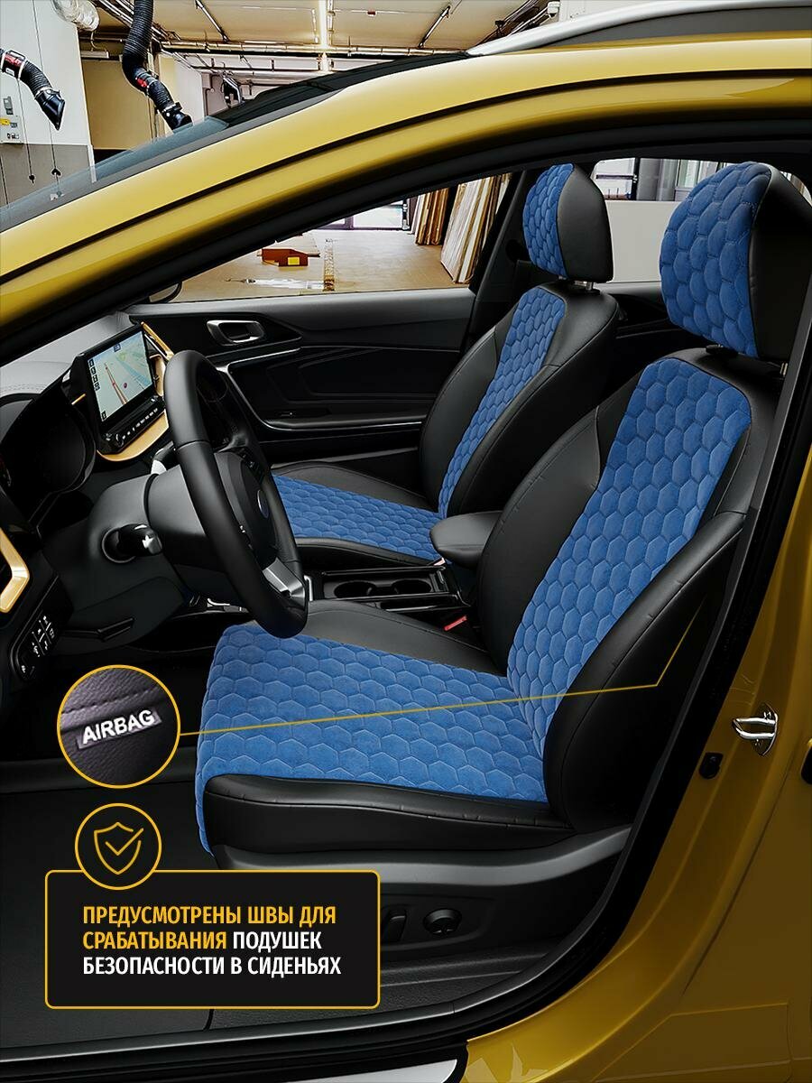 Чехлы для Nissan Almera 1 Classic 2000-2018 Синий Черный Алькантара соты Авто Лето LA494C27 интересное: