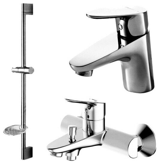 | Дополнительная информация | комплект включает смеситель для умывальника, смеситель для ванны и душа; высота стойки для душа: 700 мм; диаметр душевой лейки: 80 мм |
