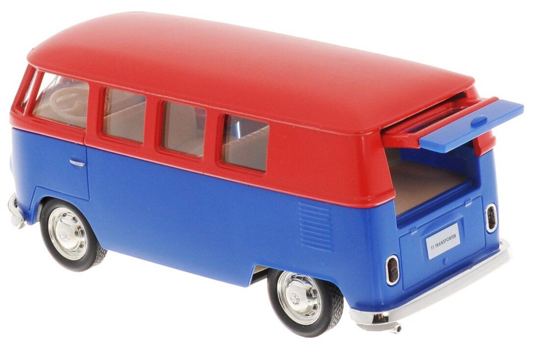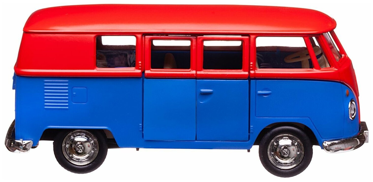Машинка металлическая Uni-Fortune RMZ City серия 1:32 Автобус инерционный Volkswagen Samba bus Transporter, цвет матовый красный с синим, двери открыв