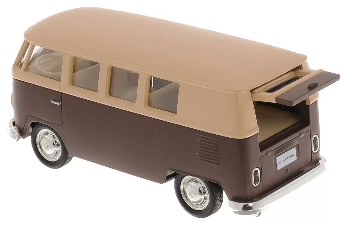 Машинка металлическая Uni-Fortune RMZ City серия 1:32 Автобус инерционный Volkswagen Type 2 (T1) Transporter, цвет матовый бежевый с коричневым, двери открываются
