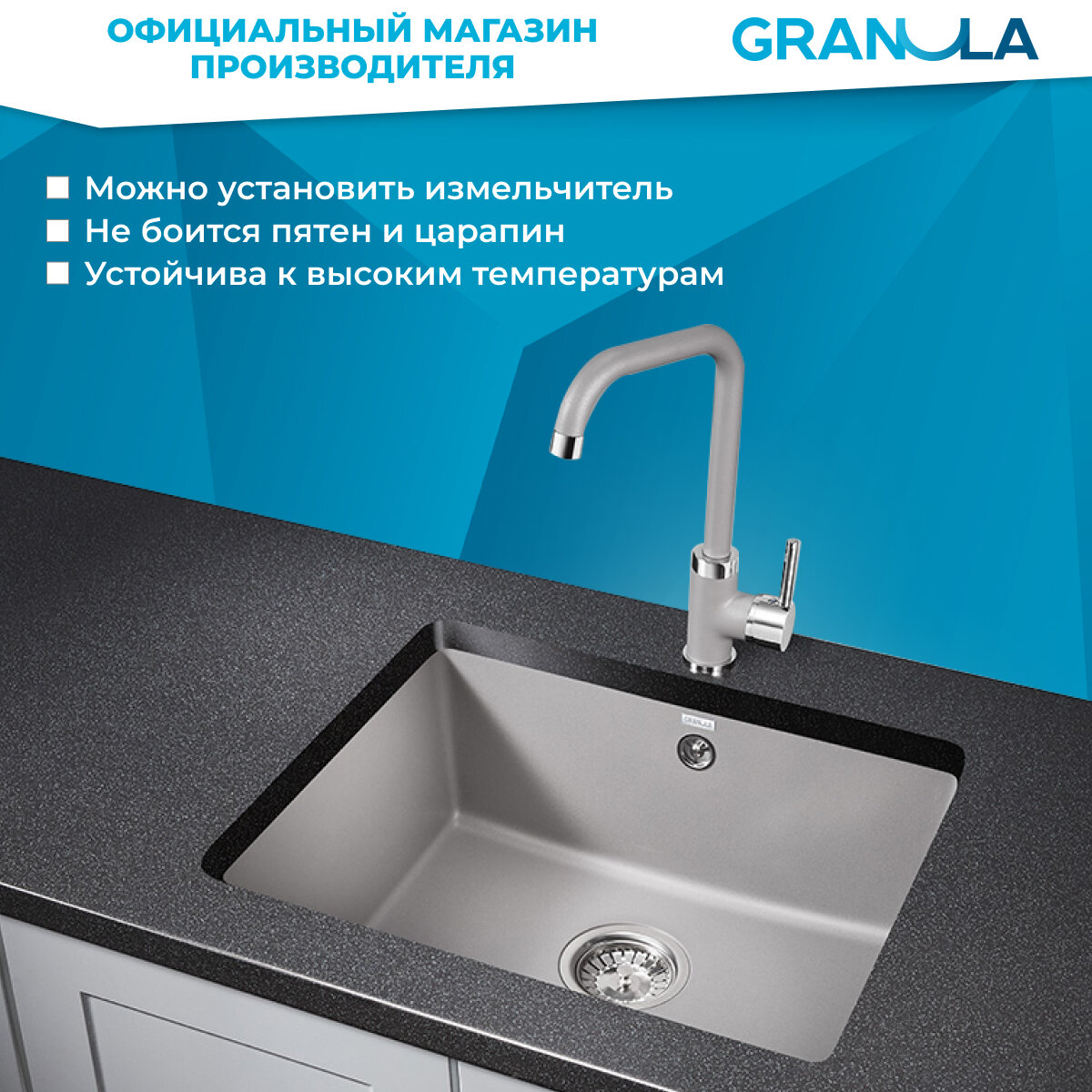 СохранитьGRANULA мойка кухонная кварцевая GR-5551 555*460 мм алюминиум интересное: