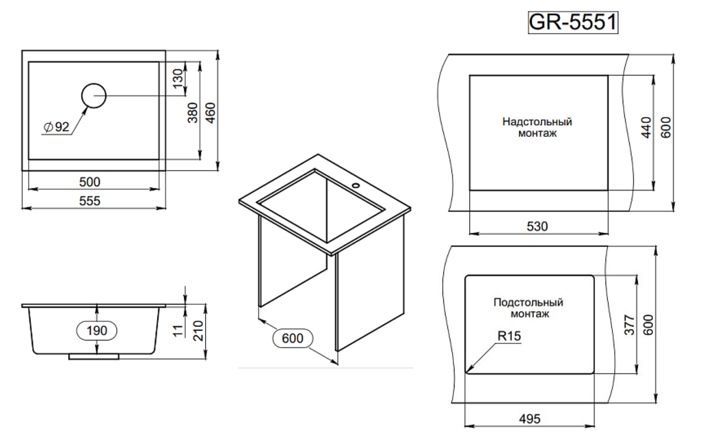 Мойка кухонная Granula GR-5551 5551pr
