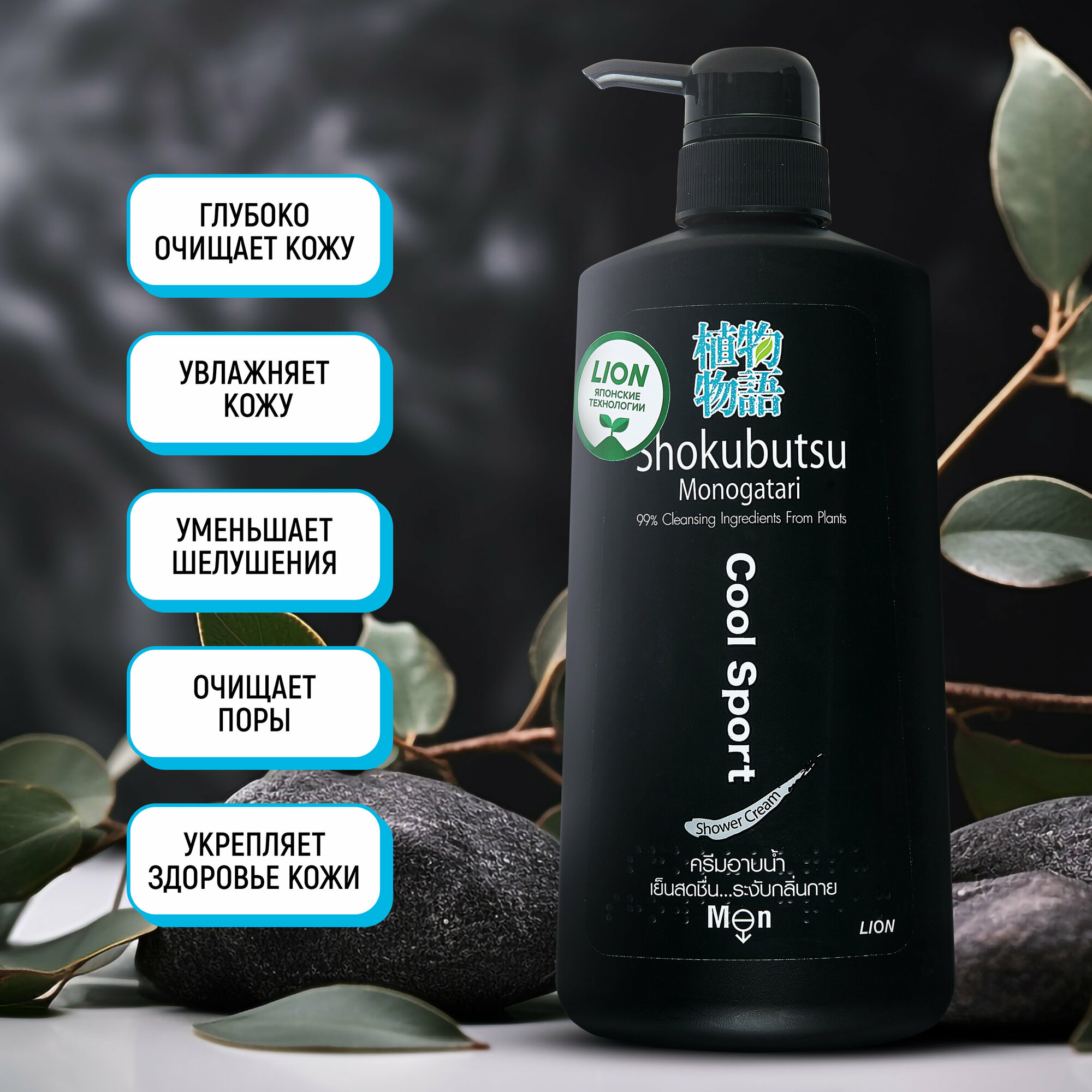 Крем-гель для душа мужской Lion Shokubutsu Cool Sport Освежающий, 200 мл .