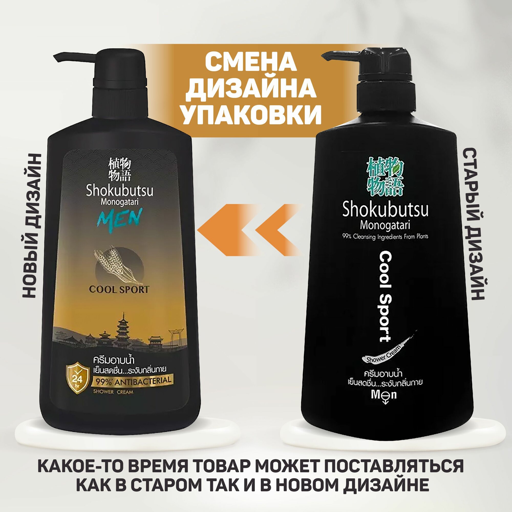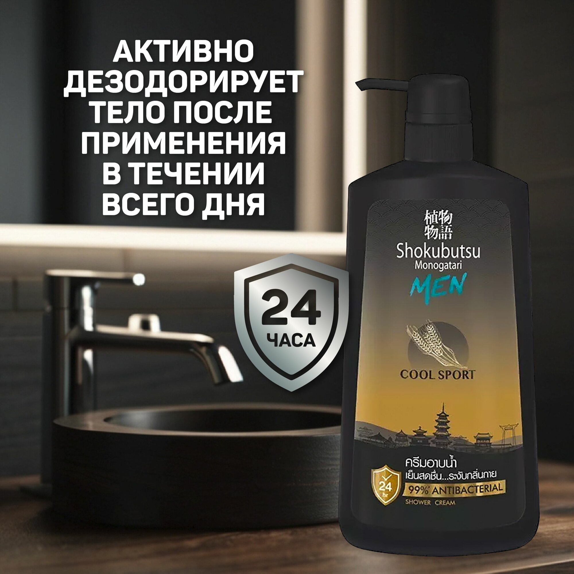 Крем-гель для душа Shokubutsu Cool Sport, 500 мл, 600 г