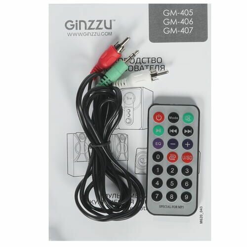 Ginzzu GM-407 2.1 с Bluetooth, выходная мощность 20Вт + 2х10Вт, аудиоплеер USB-flash, SD-card, FM-радио, пульт ДУ - 21 кнопка, стерео вход (2RCA), экв