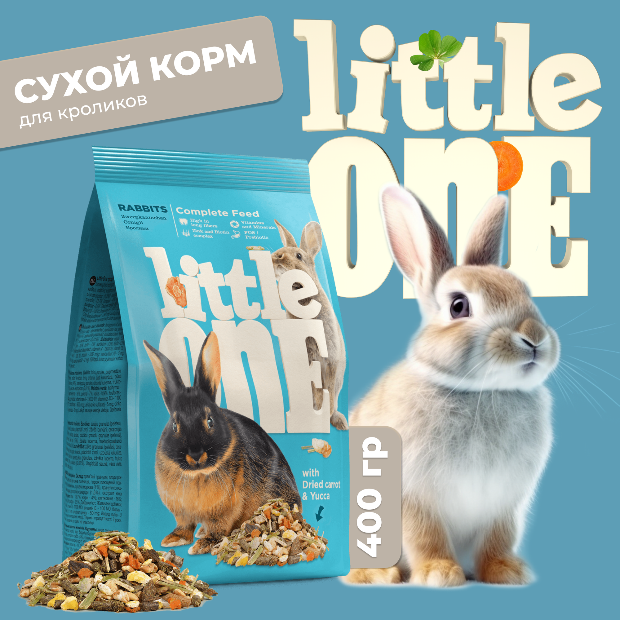 Little One Корм для кроликов с сушеной морковью и юккой - 400 г