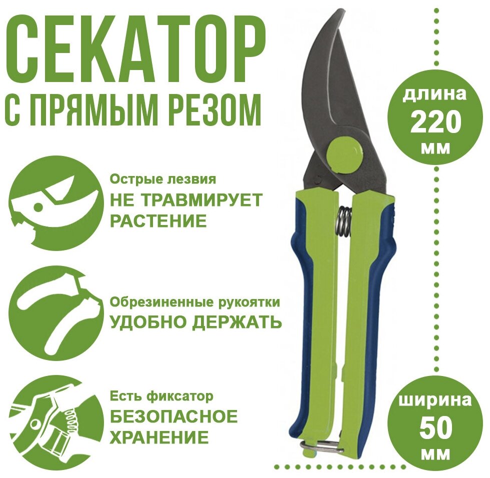 Секатор, 220 мм, пружина возвратная, оксид. покрытие, пласт. ручки (Горизонт) СибрТех [60539] интересное: