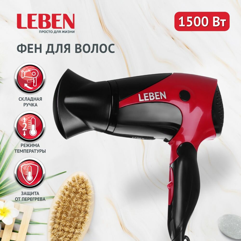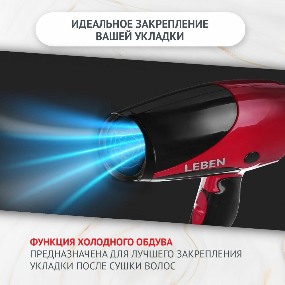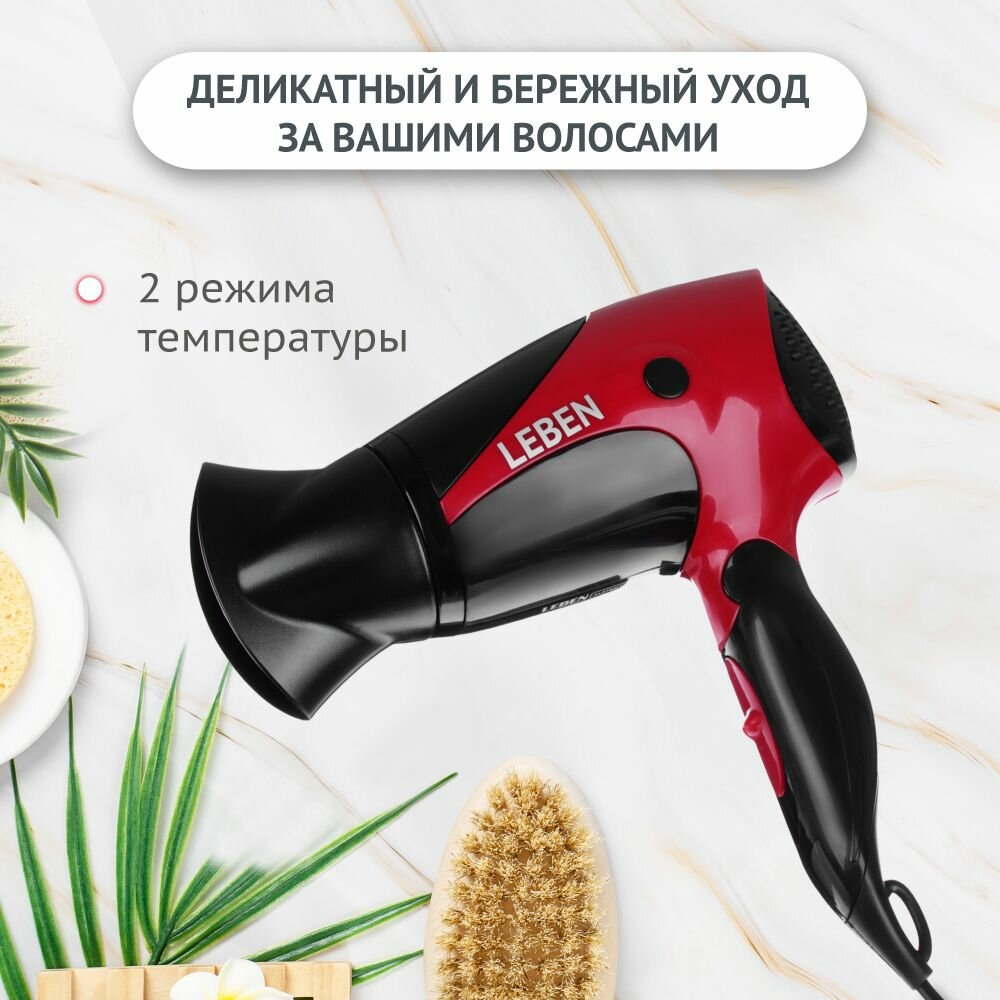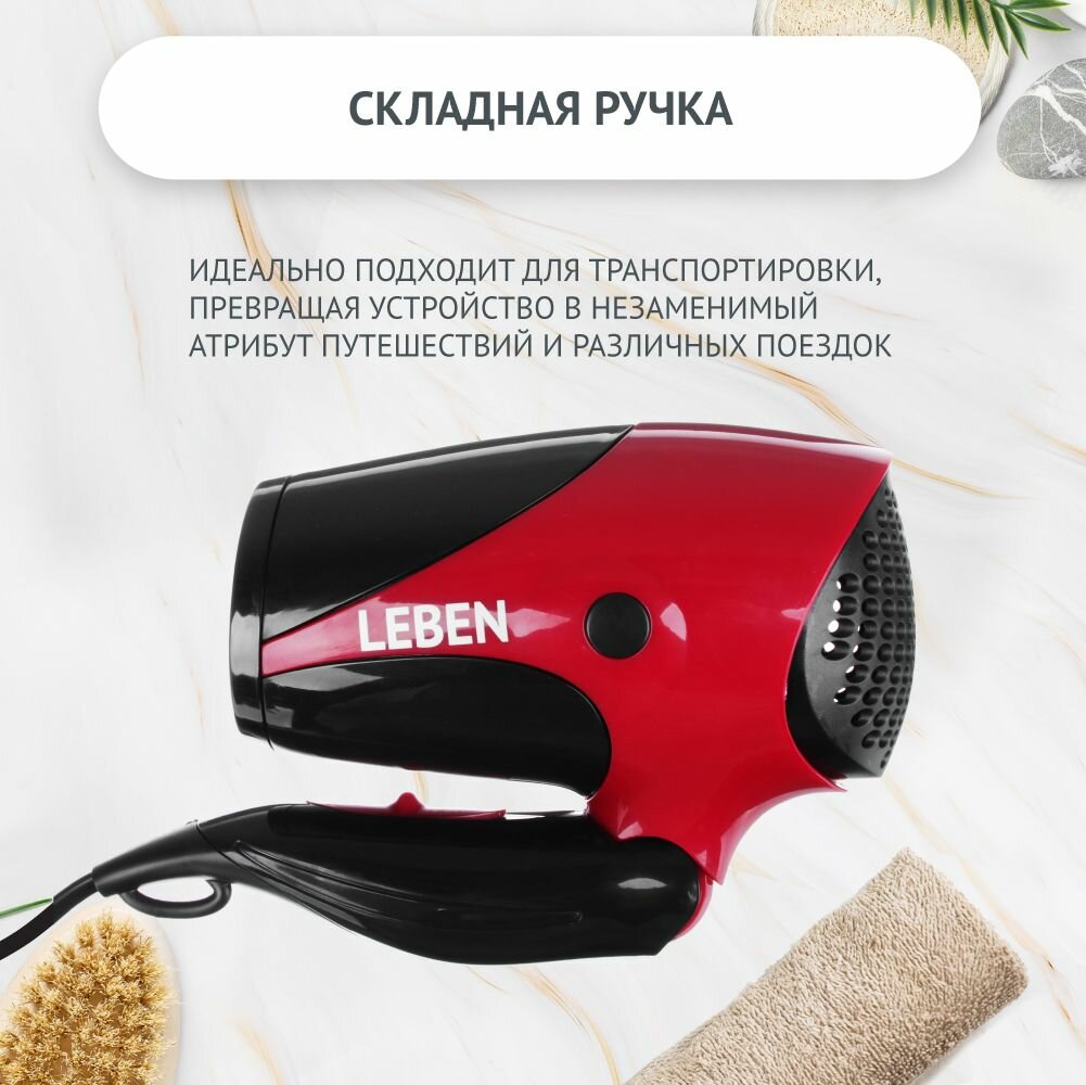 Фен для волос LEBEN складной, 1500 Вт, 2 скорости