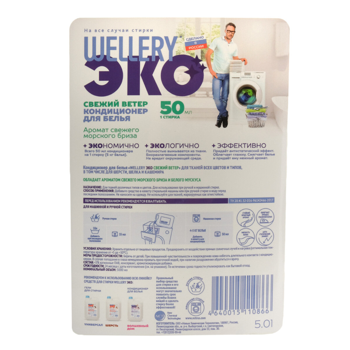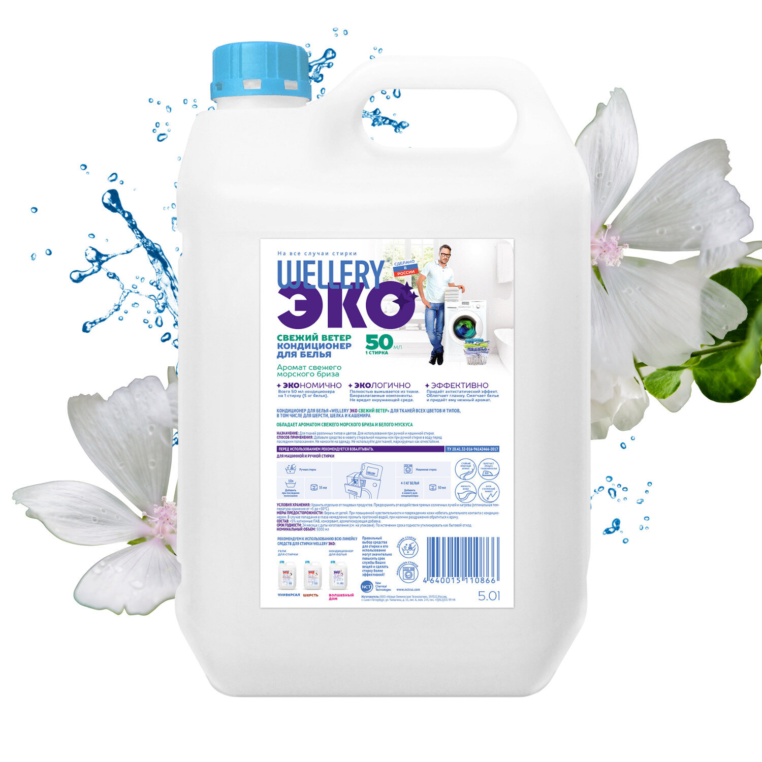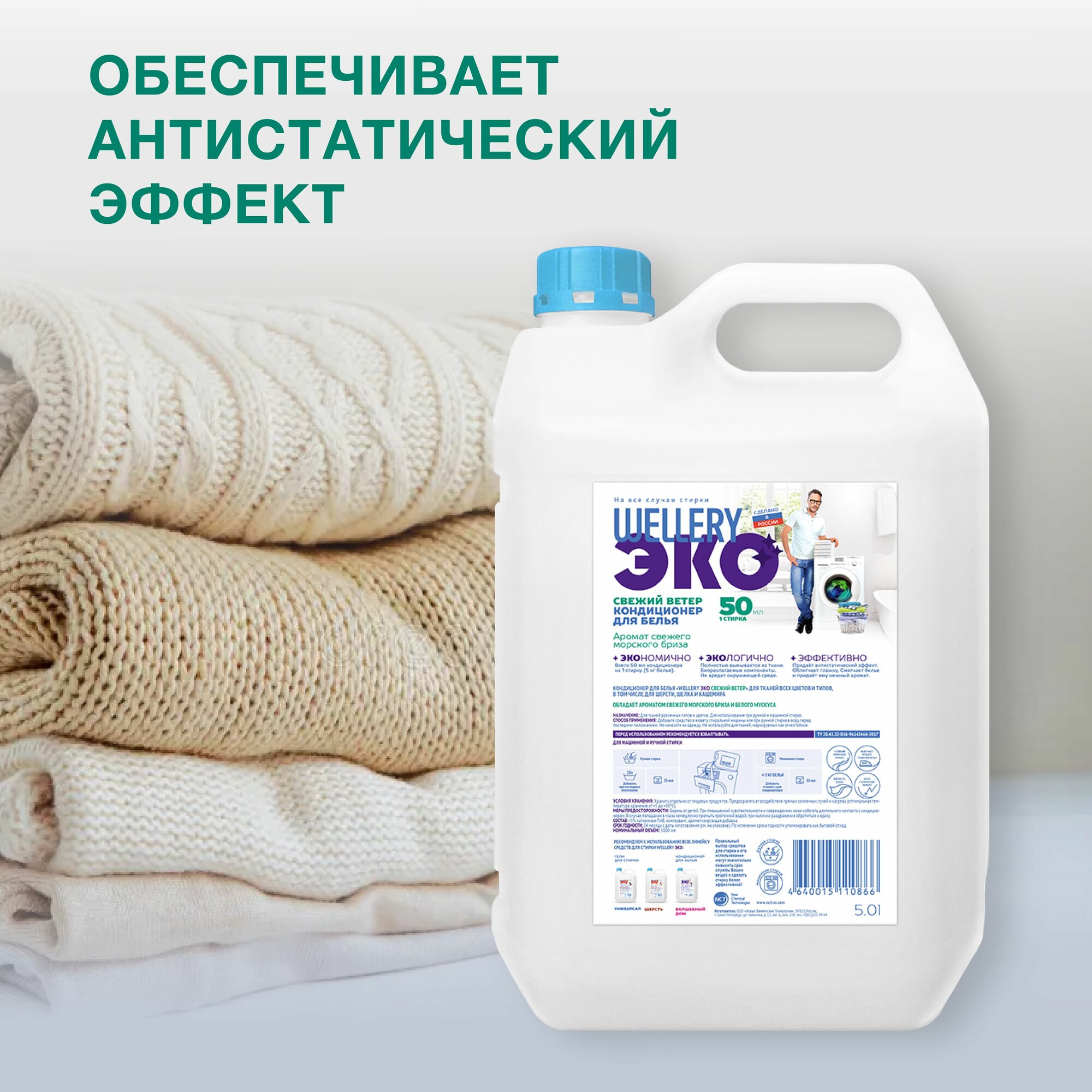 Wellery Свежий ветер 5,0 кондиционер для белья, аромат морского бриза и мускуса