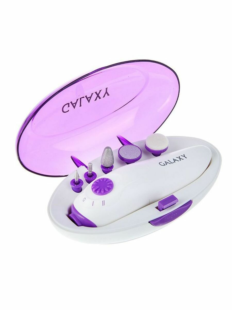Купить Galaxy Аппарат для маникюра Galaxy GL 4912, 5 насадок, 2хАА, бело-фиолетовый