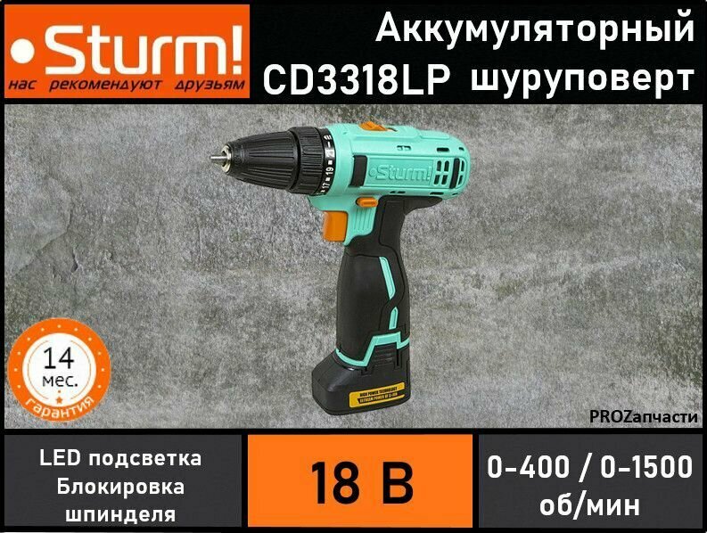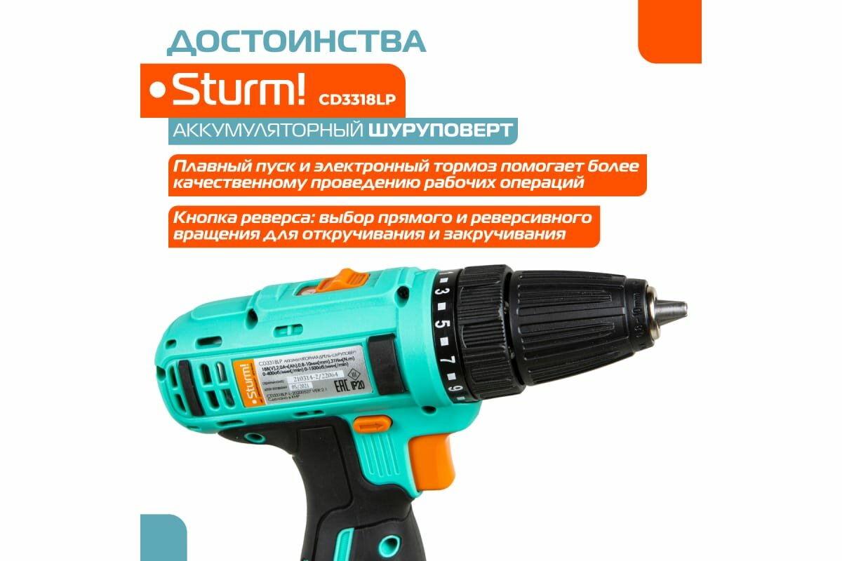 Дрель-шуруповерт аккумуляторная Sturm CD3318LP