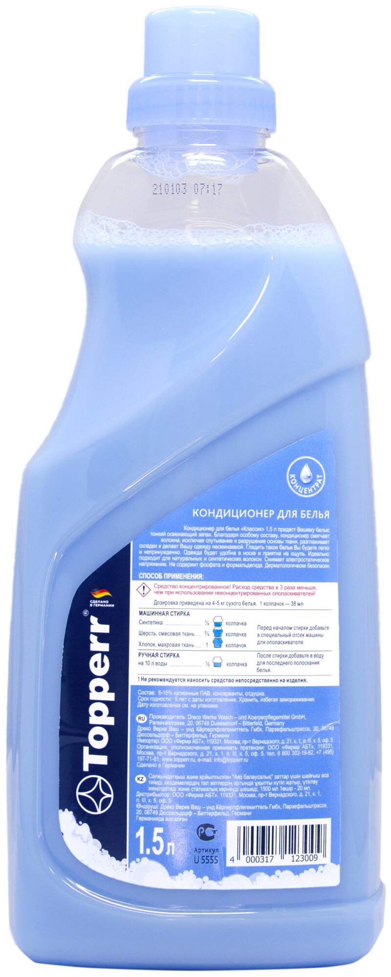 Topperr Кондиционер-ополаскиватель для белья "Ice Fresh", концентрат, 1,5 л, 1 шт., U5555