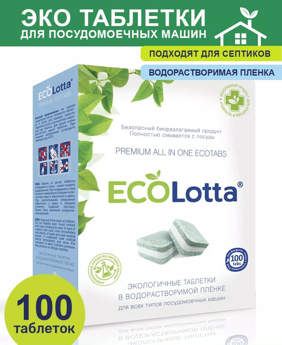 Эко таблетки для посудомоечной машины ECOLotta без фосфатов 100шт