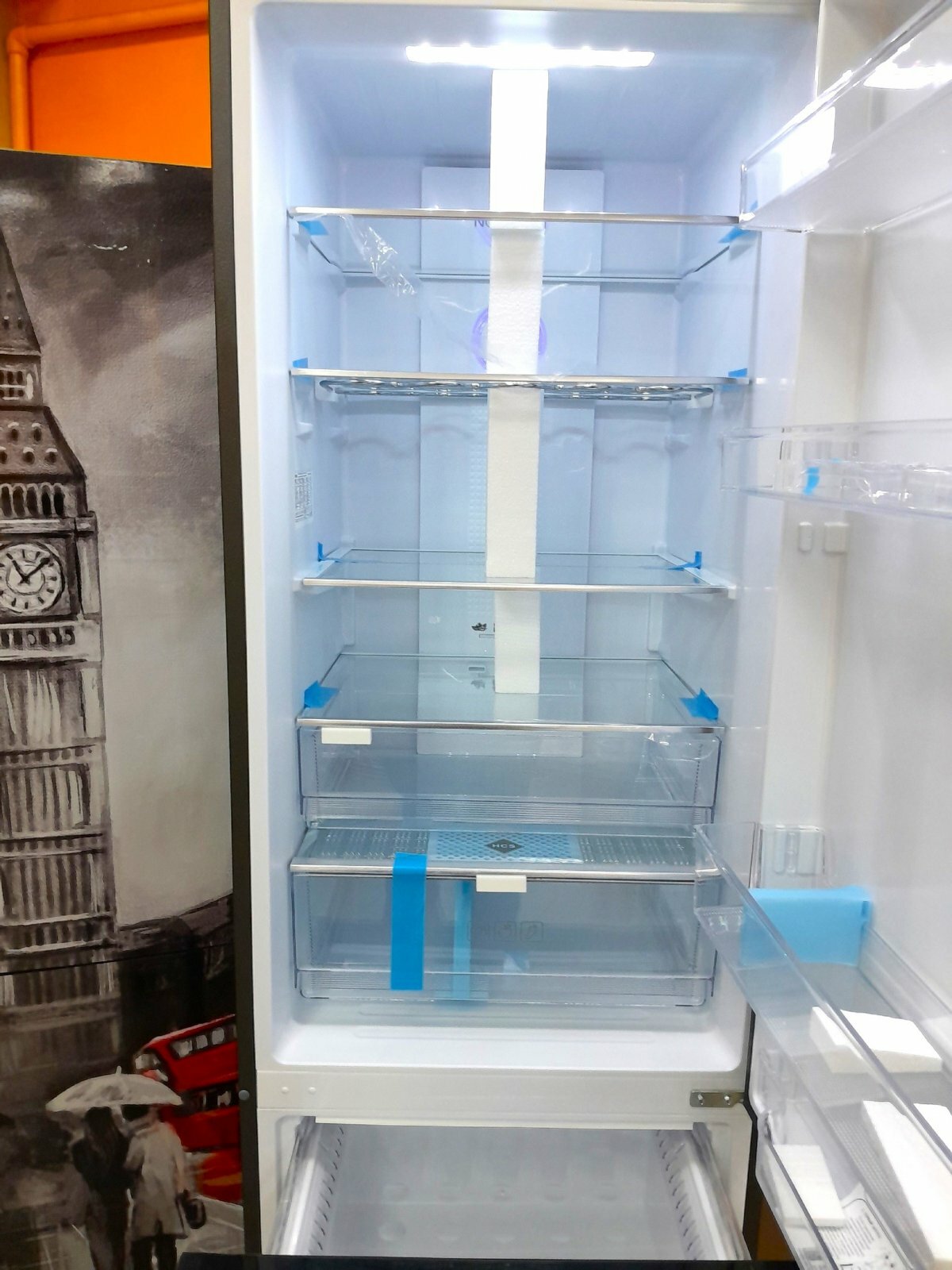 * после удобного выдвижного морозильника, где ты сразу видишь все продукты, легко открыв ящик одним движением, никакой другой уже не хочется; * он тихий! в квартире-студии это критично. Но всё, что я слышу - нечастое мирное бульканье, изредка гудение, опять же, умеренное, остальное время он молчит. Для сравнения, секундная стрелка часов тикает громче. * он морозит. Фрукты лежат две недели точно, иногда три. * он вместительный. Средняя полка и полка для вина складываются, давая больше места. * он не маркий; отпечатков пальцев нигде нет. * экран с температурой гаснет через 30 секунд, мелочь, но мне понравилось, не мозолит глаза, как в прошлом самсунге, где экран горит постоянно. |