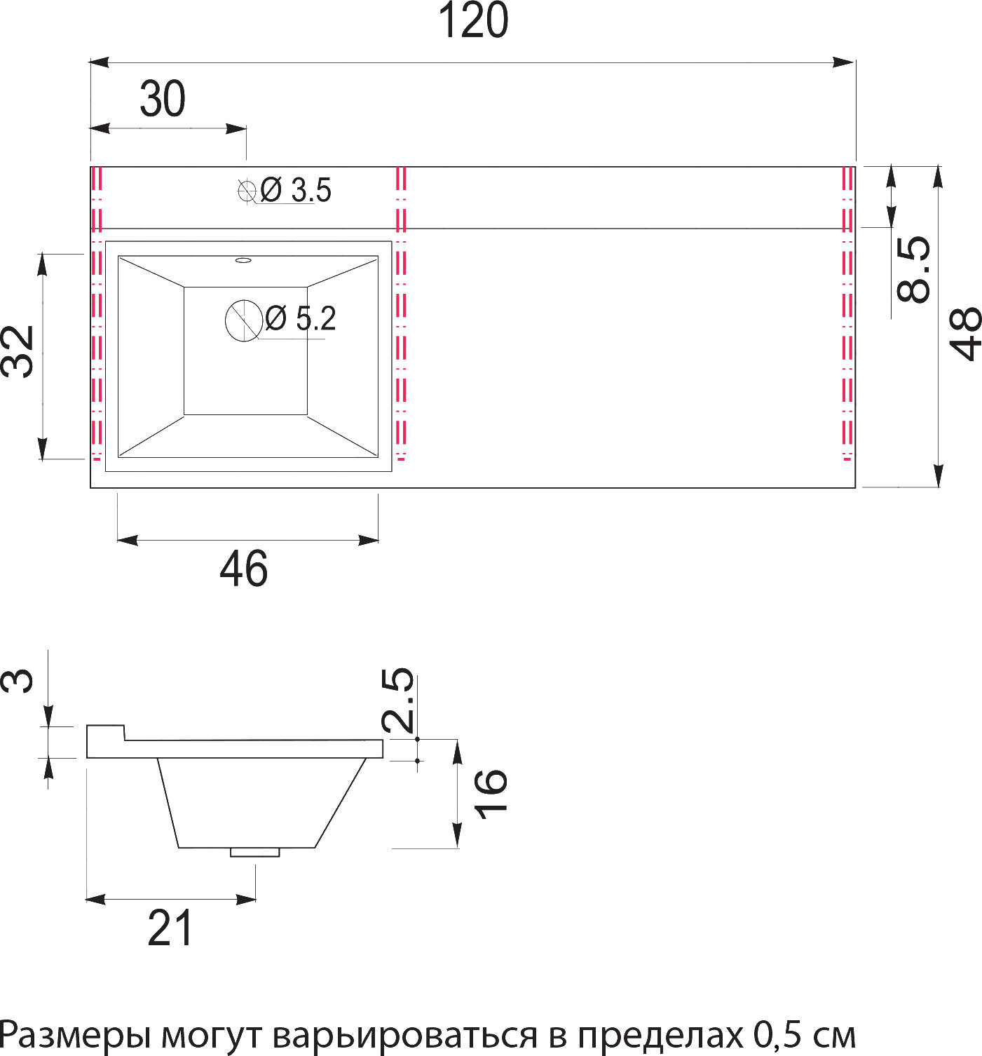 | Число размеченных отверстий под смеситель | отсутствуют |