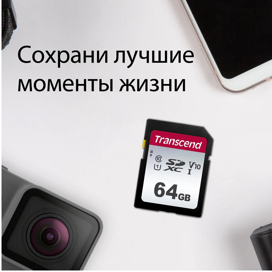 Карта памяти 64Gb - Transcend SDC300S SDXC Class10 UHS-I U1/V10 TS64GSDC300S
